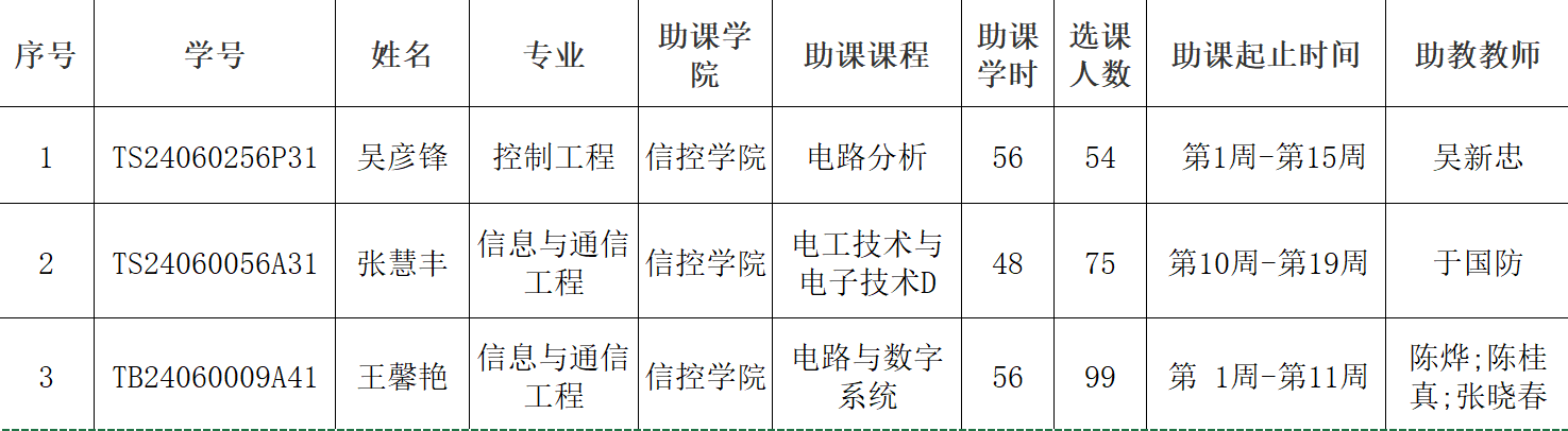 经2024级研究生本人申请,任课教师、导师同意,学院审核,现拟聘以下研究生为巨乳做爱 2024年秋季助教。