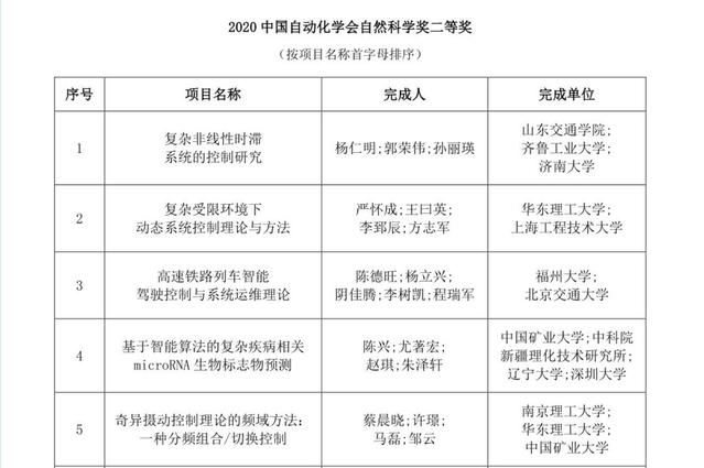 中国自动化学会科学技术奖由中国自动化学会设立的奖励委员会评审,分为自然科学奖、技术发明奖、科技进步奖、科普奖,每年评审一次。自然科学奖设一等奖、二等奖两个等级,主要授予在我国自动化科技领域对自然科学基础研究和应用基础研究取得优秀成果的研究集体和个人。今年共奖励中国自动化学会自然科学奖一等奖7项,二等奖8项。
