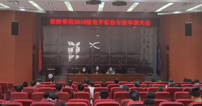 在信控楼A101报告厅召开2018级电子信息专业年级大会,会议由巨乳做爱