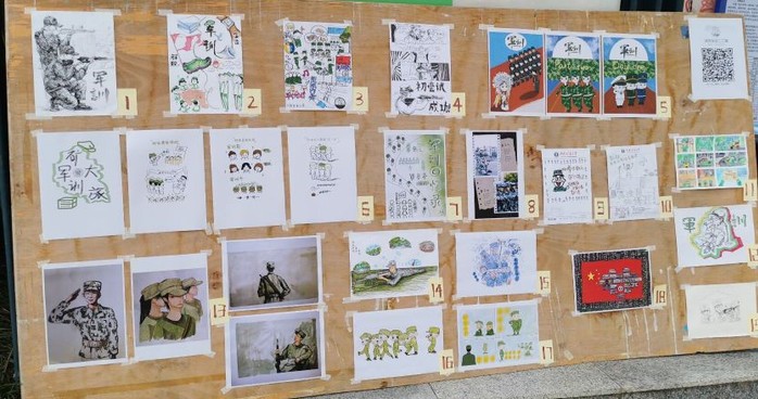 活动前期,负责人通过海报及公众号等多种途径对活动进行宣传预热,使同学们对本次活动有更充分的了解,激发同学们参赛的热情。活动中,参赛者以“青春时刻,记录美好”为主题创作了丰富有趣的文本作品和绘图作品来记录军训故事。10日30日起,主办方进行作品的收集整合,安排图画类作品在青春广场进行展示,文本类作品通过公众号进行线上展示,并由大众评审进行投票。最终,主办方整理票数,发放奖状,并将优秀作品通过公众号进行多方位的二次推广。