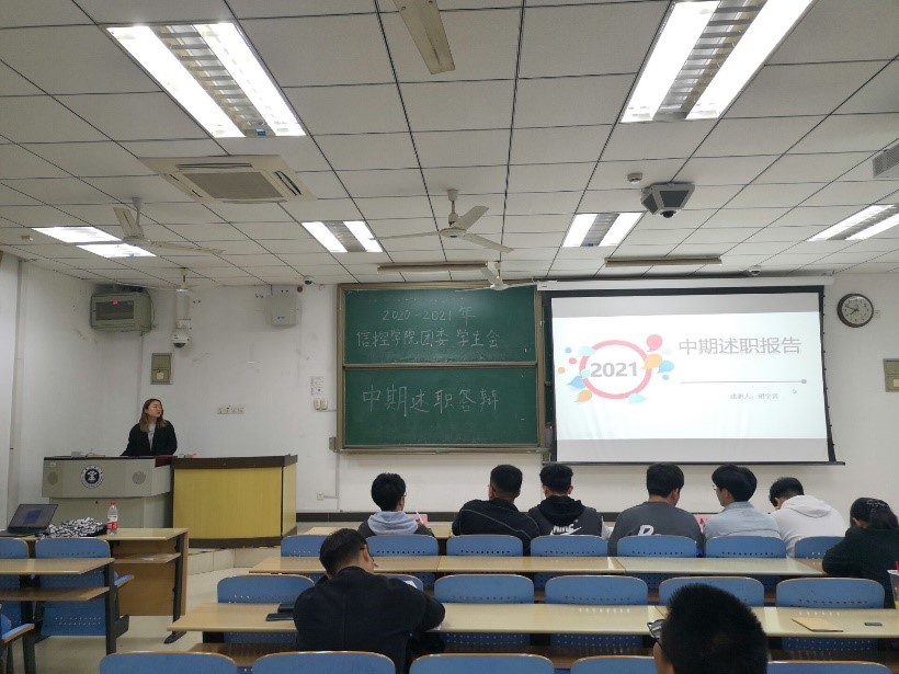学生会和基础团务中心在博一A302召开中期述职答辩,学生会主席团和基础团务中心负责人担任此次述职评委,学生会和基础团务中心全体成员参会聆听,会议由梅子怡同学主持。