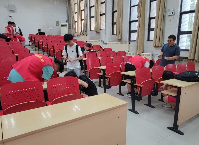 为保证活动有条不紊的进行,志愿活动开始前,志愿者们进行了分组,团支书分发提前购置好的工具,分配好各组负责的教室和区域。有的志愿者负责固定、调整座椅,有的负责涂抹润滑油,经过大家的团结协作,上油工作很快完成,教室的座椅变得更加灵活。工作完成后,志愿者们清理了油渍,并进行了仔细检查。