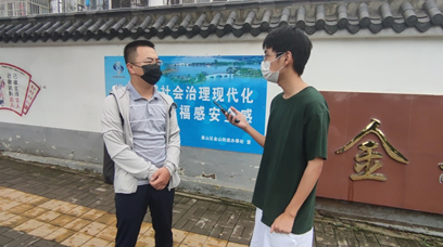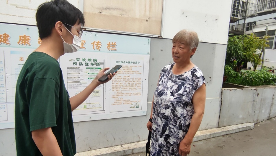 实践团成员张傲在上山花园对本地居民进行问题采访,调查油烟机普及情况,简单探讨了油烟净化技术的未来展望与发展方向。