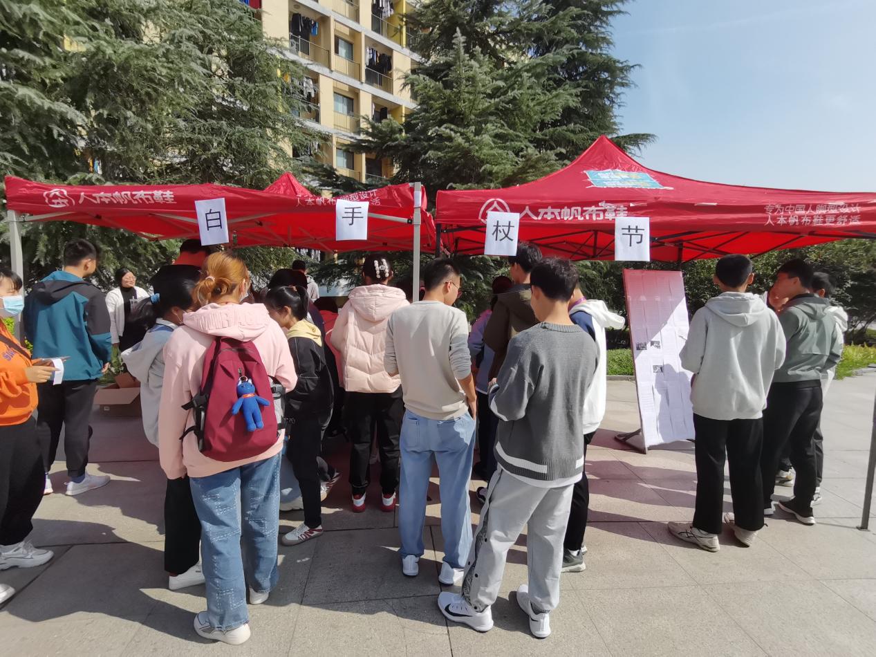 锋行青年志愿者协会于二食堂广场举办了“白手杖节”活动。