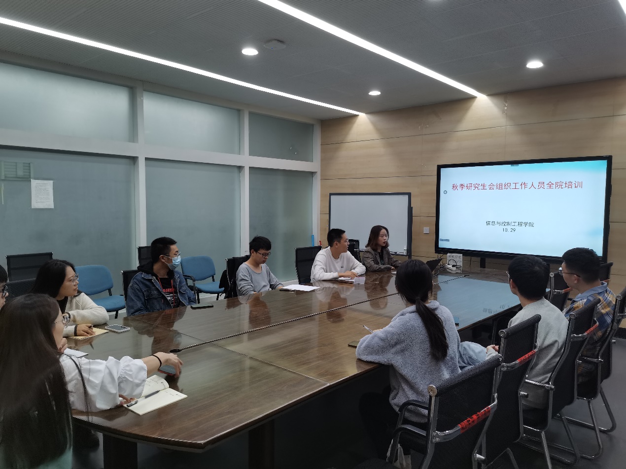 研究生会2021-2022学年秋季培训会在教四楼400会议室顺利召开。本次培训会采用线上线下同时进行的方式,全体研究生会成员参加。