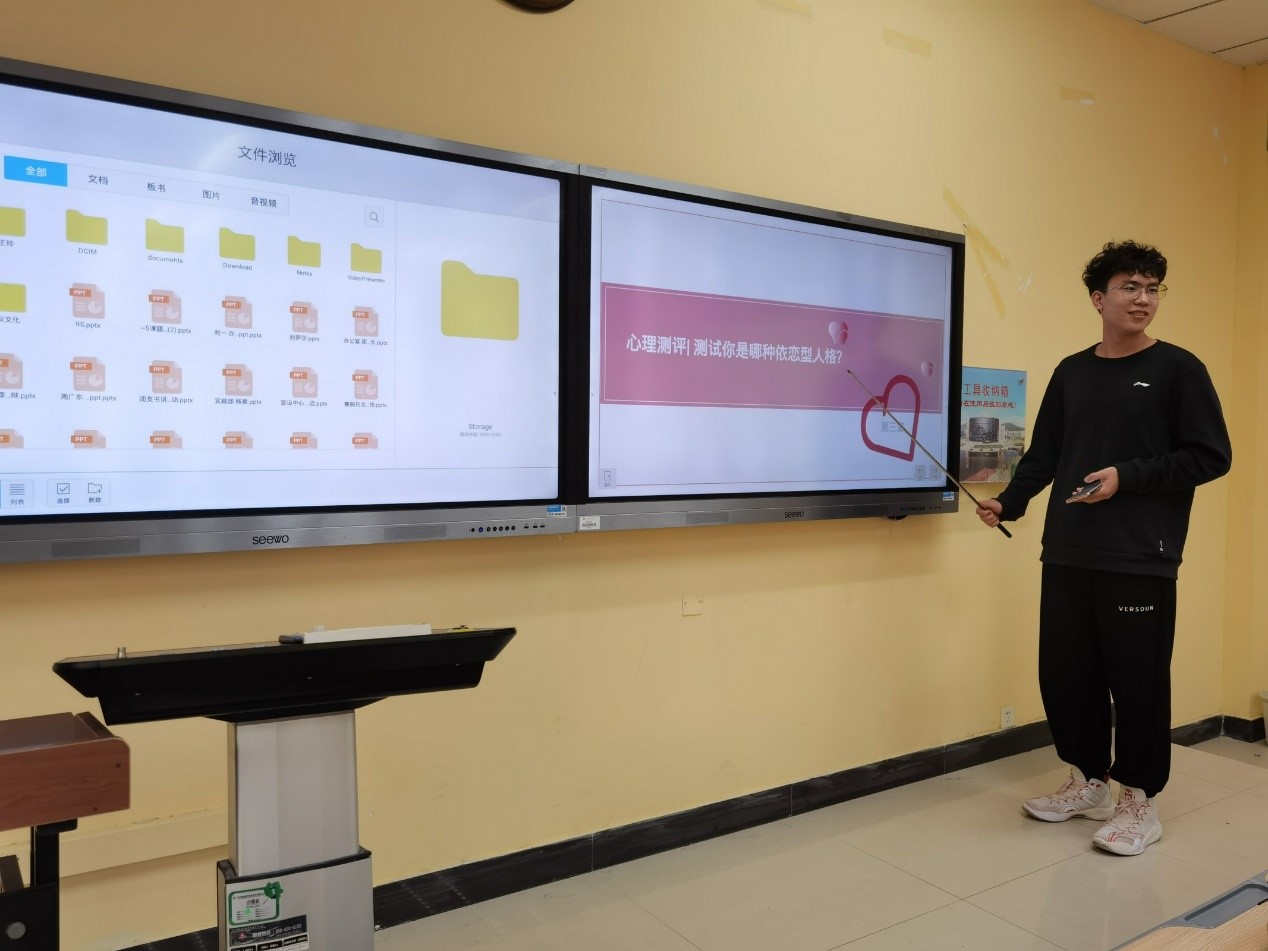马逸飞同学通过PPT讲解、发问互动、举例等形式分享了有关恋爱心理健康的知识,围绕“什么是恋爱心理”、“怎样进行恋爱情绪管理”等话题,向同学们普及了一系列心理调适方法。接着大家观看了有关恋爱心理学的视频,进一步了解了恋爱心理学的知识,同学们积极发问,现场气氛活跃。班会最后,同学们还进行了心理小测试、你演我猜等活动,在愉快的氛围中,本次班会圆满结束。