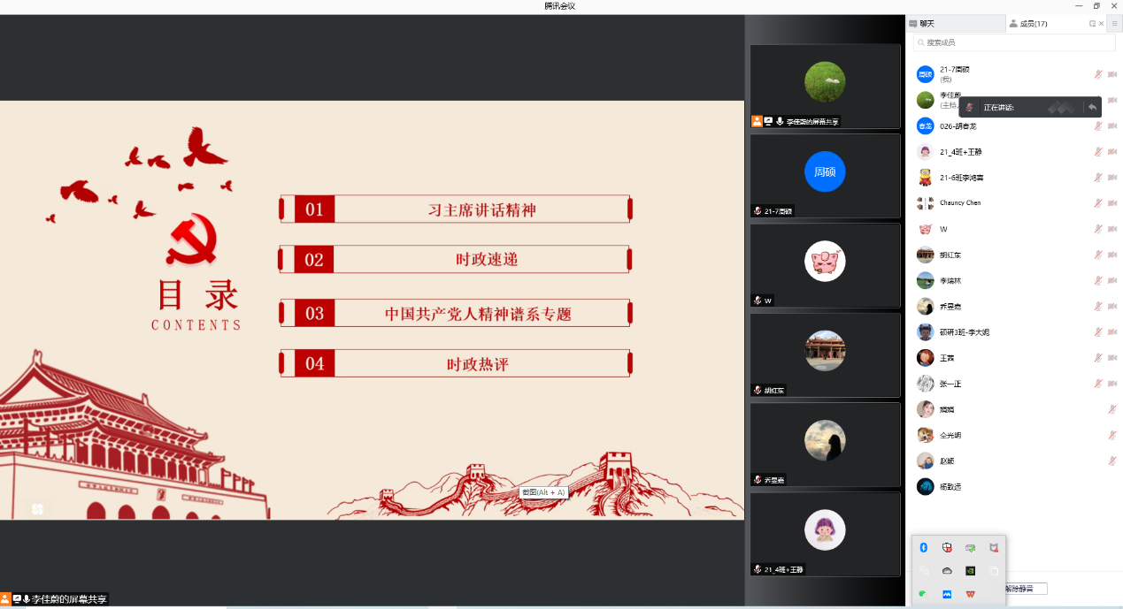 本次理论学习活动由研究生会成员李佳蔚主持。会议的内容主要围绕:习近平同志在纪念中华人民共和国恢复联合国合法席位50周年大会上的重要讲话精神、中国共产党人精神谱系-井冈山精神和苏区精神等内容展开。同学们通过图片、文字、视频等多种形式重温中华人民共和国恢复联合国合法席位50周年,同学们从中感受到:这是中国人民的胜利,也是世界各国人民的胜利!新中国恢复在联合国合法席位是世界上的一个大事件,也是联合国的一个大事件。,这是世界上一切爱好和平和主持正义的国家共同努力的结果,这标志着占世界人口四分之一的中国人民从此重新走上联合国舞台。50年来,我国积极承担国际责任,成为联合国常任理事国中为联合国维和行动出兵最多的国家,同时在经济、农业、医疗等领域与各国分享经验,开展合作。