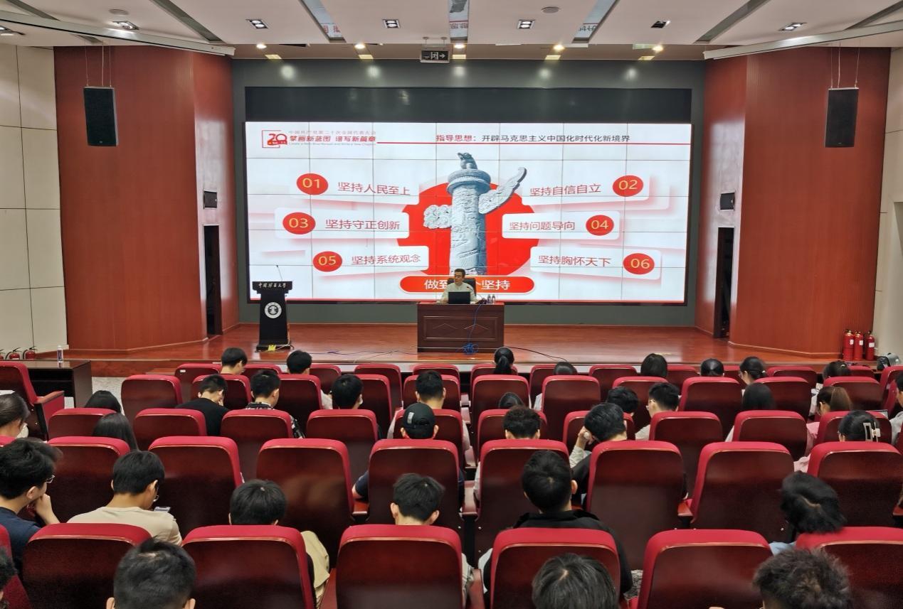 在学院楼A101报告厅举办党的二十大精神宣讲会。我校学习贯彻党的二十大精神巡回宣讲团成员、低碳能源与动力工程学院党委副书记于基伯应邀作题为“用青春书写奋进新征程的时代答卷”的专题报告,报告会由巨乳做爱