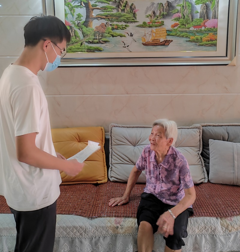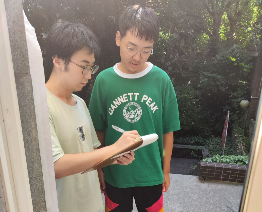 成员丁钧豪走上重庆街头随机采访路人,了解当地疫情防控的相关信息,调查疫苗接种、核酸检测变革以及居民的防控意识等方面的情况,增加了公众对防控措施的认知和理解。