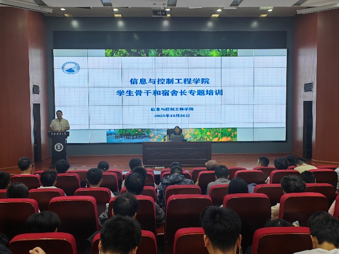 于信控楼A101报告厅举办心理健康工作培训会。校大学生心理健康教育中心张金健老师为学院2022级、2023级的班委、宿舍长做专题培训。培训会由学院辅导员谢龙龙主持。