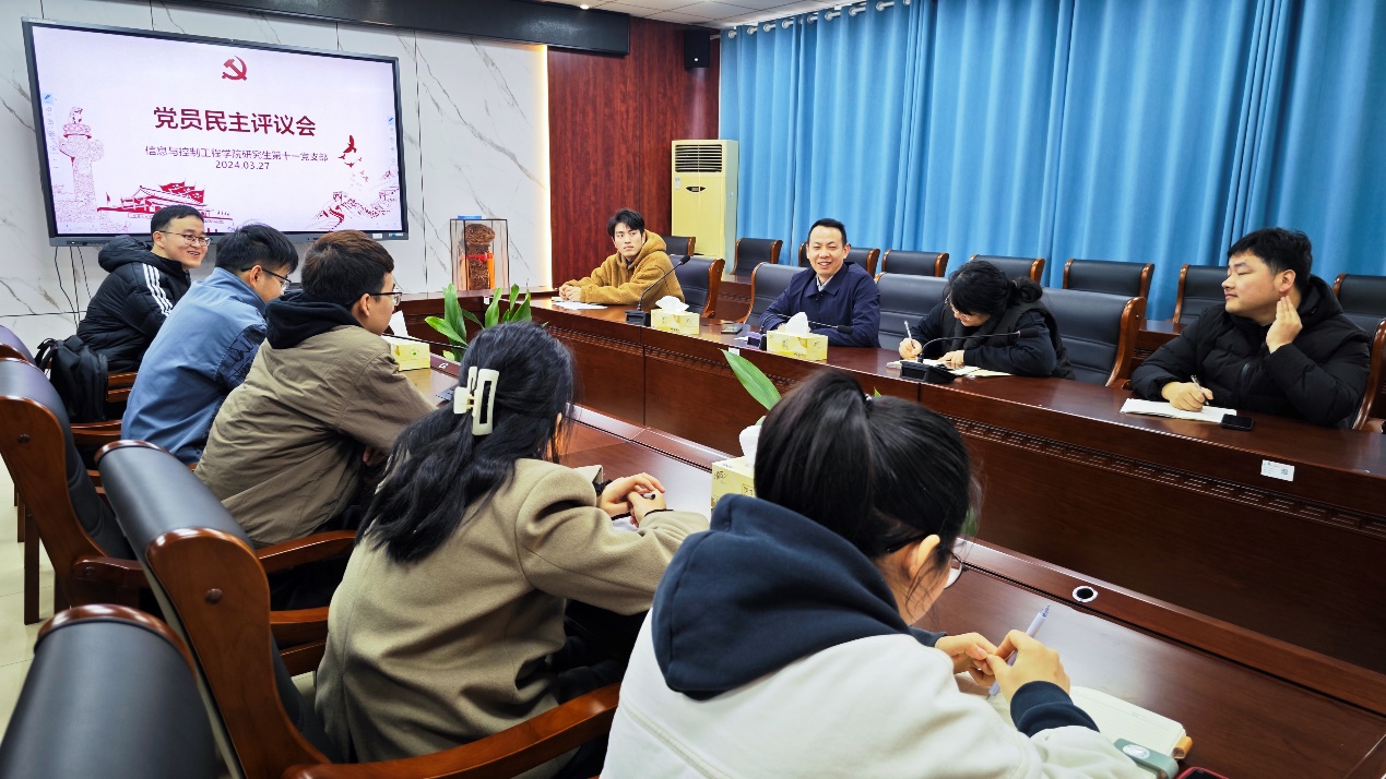 A311会议室召开年度党员民主评议会暨三月政治学习会。副院长陈平,支部指导老师雷萌,以及支部全体党员参加会议。会议由党支部书记赵天聚主持。