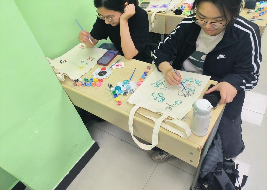 活动秉持绿色环保理念,倡导践行绿色生活。活动中,每位同学通过在帆布袋上绘画自己喜欢的图案,制作出可重复使用的帆布袋,同时展现自身的创新才能和动手实践能力。班长刘城煜同学和团支书张晓岚同学也向大家传递了“绿色节能,环保先行”的理念,倡导大家从小事做起,生活中减少使用一次性塑料袋,改用可重复使用的帆布袋,共同守护美丽家园。
