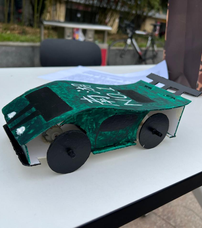 各个参赛队伍须以主办方提供的材料为基础,设计并制作出一辆速度快、行驶稳定的赛车,进行竞速PK和“保龄球”游戏。从材料领取、小车制作到最终测评环节,各参赛队伍成员积极交流,协同合作,增长见识,收获友谊。比赛当天,团队成员默契配合,不断调试赛车,及时解决问题,充分展示出他们对各类机械结构的理解程度和应用能力。活动最终评出两个一等奖、五个二等奖和七个三等奖。