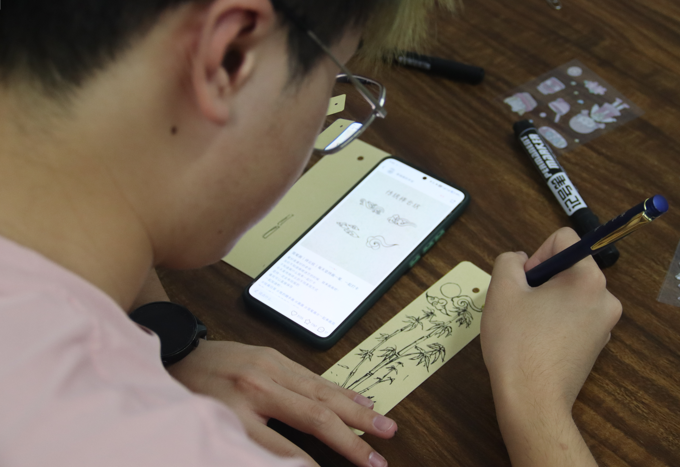 工作组松2会议室组织开展了“笔架沾窗雨,书签映隙曛”书签制作主题活动。