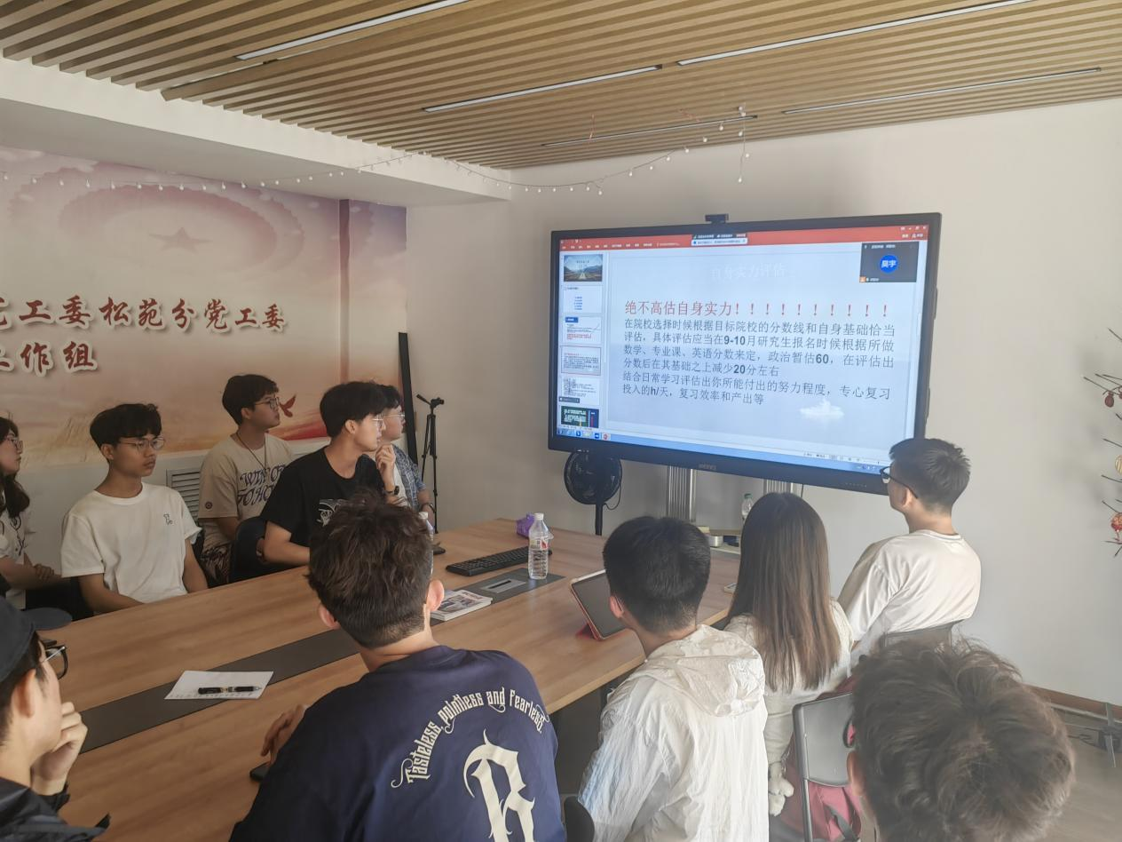 于松三党工委会议室举行“研途有你”考研经验分享会,会议邀请了郭腾宇、秦梦辉、朱宇、朱玉清等四位优秀考研上岸学生代表作经验分享。