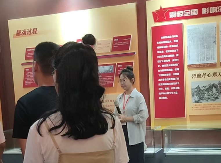 7月28日上午,实践团队来到了党史教育陈列馆。抵达目的地后,实践队员们在讲解员的带领下进入陈列馆进行参观学习。陈列馆内庄严肃穆,一件件珍贵的历史文物、一幅幅生动的历史照片、一段段详实的文字资料都生动地再现了中国共产党员在抗战时期的艰难与坚毅。在讲解员的引导下,队员们依次参观了“冲破黑暗,追求光明”“党的领导,曙光绽放”“暴动整编,载入史册”“前赴后继,夺取胜利”等多个展区。每到一处,大家都驻足致敬,用心聆听讲解员的解说,深刻感受中国共产党人不畏艰险、顽强拼搏的革命精神。