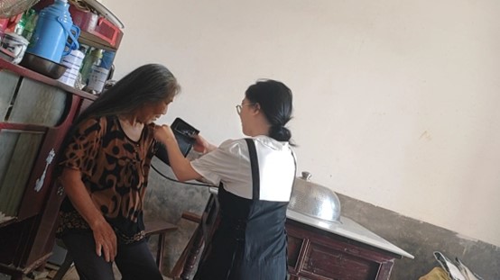 7月24日,团队成员来到北庄村拜访当地老人,为他们提供免费的血压测量服务,并耐心地为每位老人分析测量结果。对于检测出高血压的老人,成员们更是从饮食、运动、服药等方面详细讲解了日常生活中需要注意的事项,并鼓励他们定期监测血压,保持健康的生活方式。
