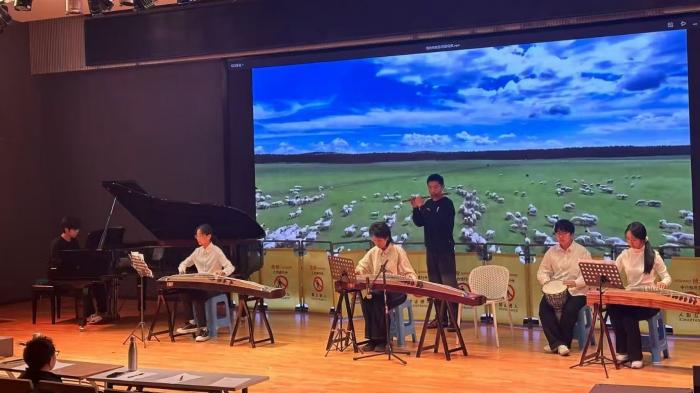 学子将舞蹈、朗诵、古筝、笛子、钢琴、手鼓等艺术形式相结合,共同演绎了经典曲目《敕勒歌》。他们的演奏,让在场观众仿佛置身于广袤草原,沉醉于一片祥和宁静之中。参演同学表示,这次经历不仅让他们深刻感受到了音乐跨越时空的魅力,更在实践中体会到了团队协作不可或缺的力量与重要性。