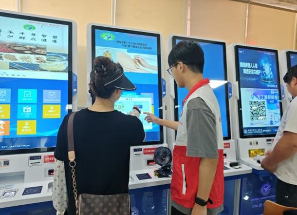在自助服务区域,志愿者协助患者使用自助挂号、缴费等设备。面对一些不熟悉智能设备操作的患者,志愿者手把手地进行指导,从扫码登录到选择科室、支付费用,一步一步耐心讲解,确保患者能够顺利完成操作。此外,志愿者还在候诊区维持秩序,为患者提供饮用水,安抚患者因等待产生的焦急情绪。同时,志愿者还向患者及家属宣传健康知识,倡导文明就诊。