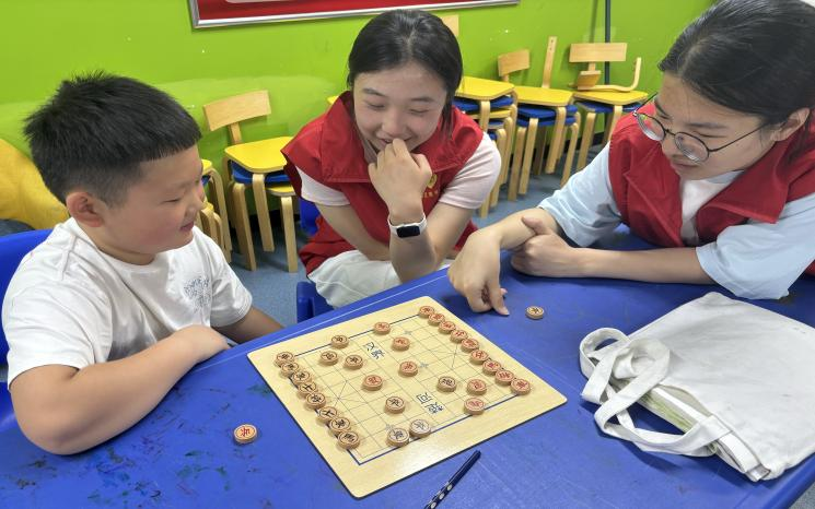 7月11日,实践团成员针对孩子们的学习需求,耐心讲解语文、数学、英语等学科知识,帮助儿童梳理学科难点、巩固所学知识。7月15日,实践团成员组织孩子们分组参与棋类益智游戏,设置象棋与飞行棋两个项目。活动过程中,孩子们专注对弈,展现出良好的竞技状态,同时思维能力和团队协作意识也得到提升。7月21日,实践团队组织了鲁班锁活动。实践团成员向孩子们介绍了鲁班锁的构造与原理,随后分发工具并指导操作。现场互动气氛热烈,孩子们在实践中感受到了中华优秀传统文化的魅力。