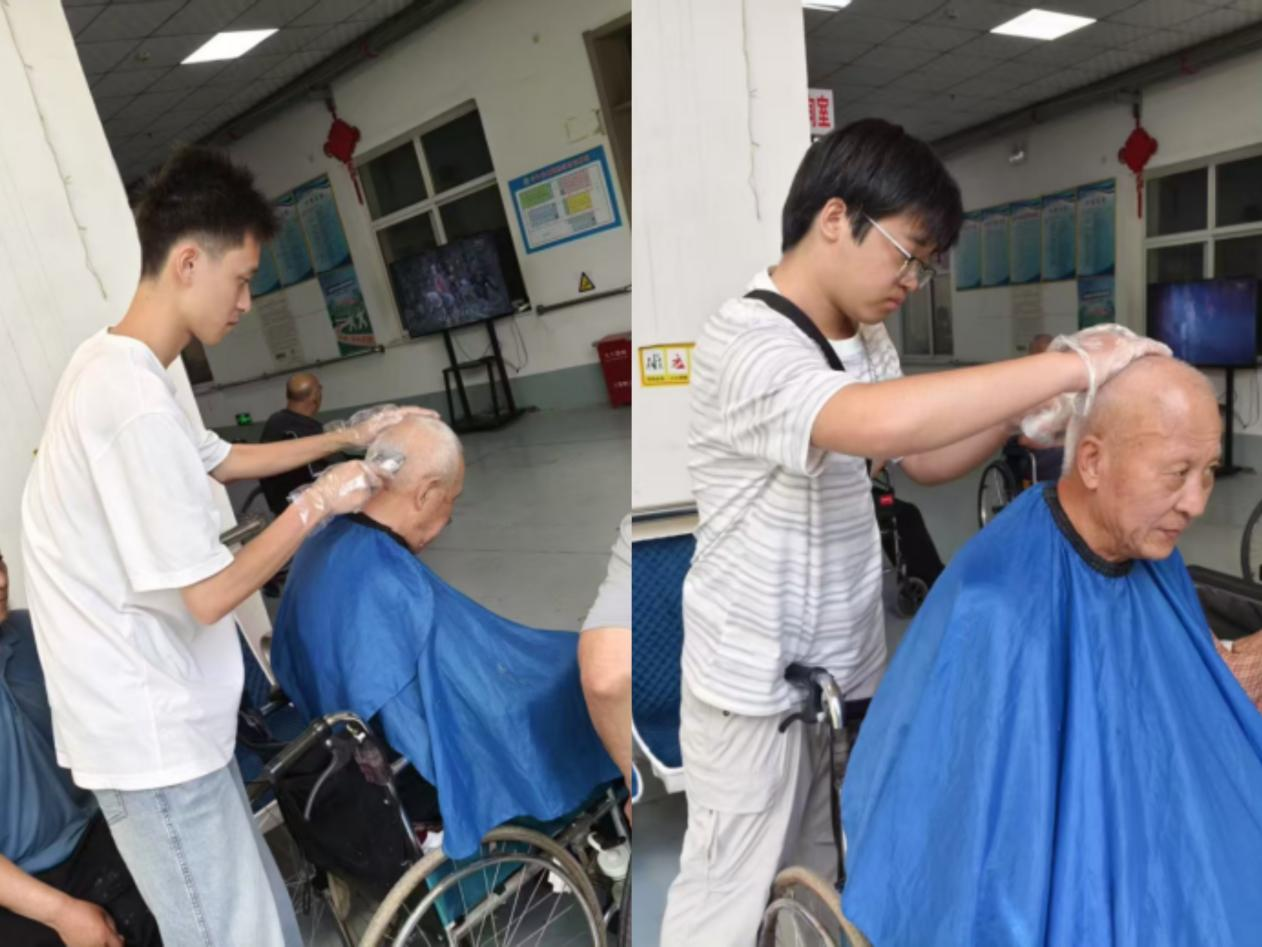 “向阳青年”实践团队河北省邢台市宁晋县安康医养院,开展打扫卫生、陪伴聊天、理发剃须等敬老志愿服务,以实际行动传承尊老爱老传统美德。