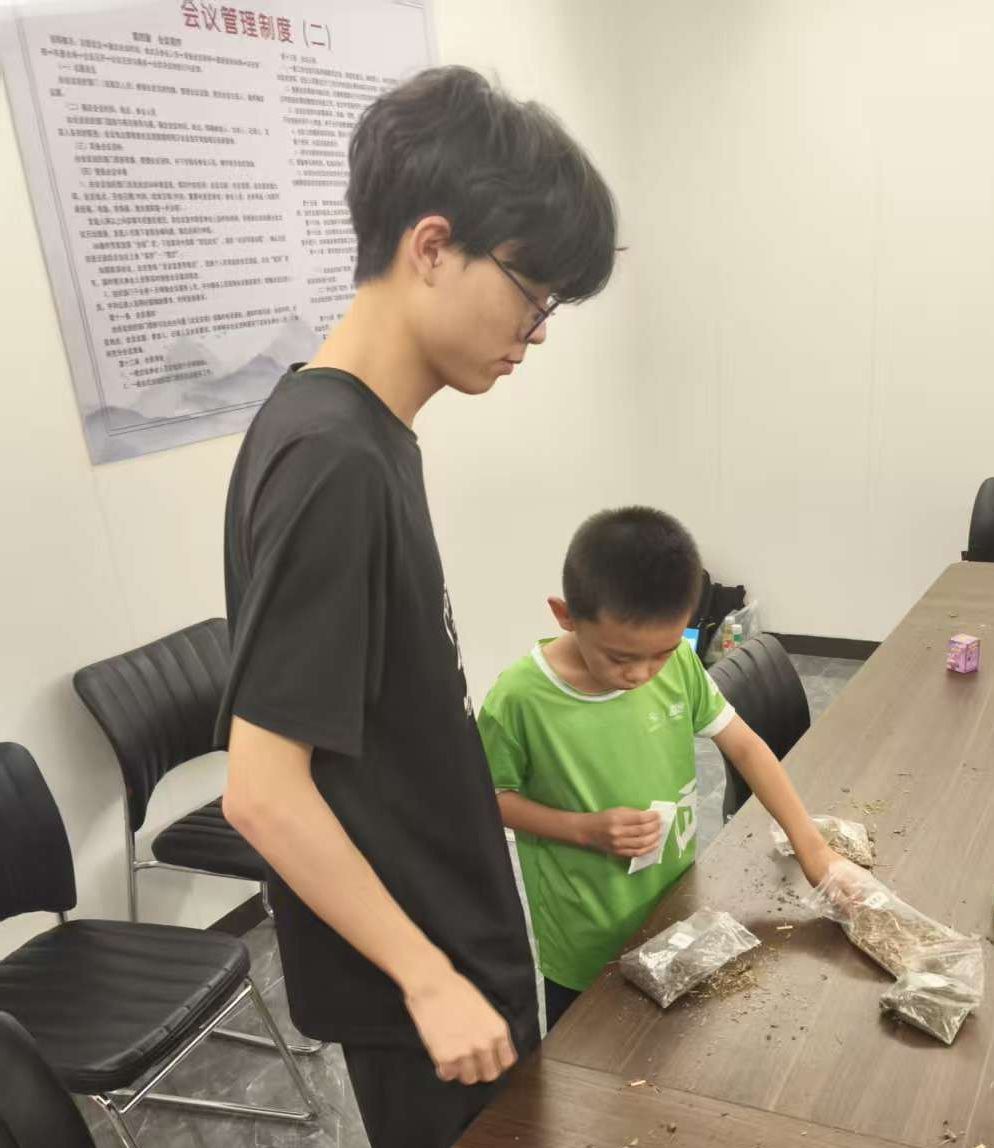 活动筹备阶段,团队成员常景皓、郝梓恒先到仓库搬取座椅,保障家庭顺利落座;随后引导家长与孩子入场并维护秩序,还按社区工作人员安排,备好英语卡片、香囊袋、香料等手工原料,为活动提供物资支持。活动进行阶段分为两部分,分别是香囊讲解和香囊制作。香囊讲解时,成员不断调整椅子的位置,确保每个孩子都能听到老师的讲解。香囊制作阶段,团队负责分发香囊袋。