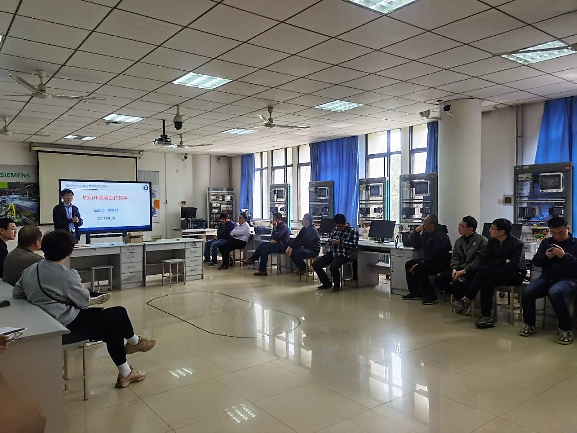 活动中,自动化系常俊林老师围绕师德师风建设背景下的本科课程教学实践主题,从教学理念、教学目标、教学方法、教学设计思路、课程设计的BOPPPS模型和如何开展混合式教学六个层面为老师们解析了混合式教学方式,强调了课程建设中思政元素融入的必要性和可行性,阐释了以学生为中心的课程建设理念。同时,常俊林老师还结合混合式教学方式实践中遇到的相关问题,与部分青年教师进行现场互动交流,为青年教师答疑解惑。