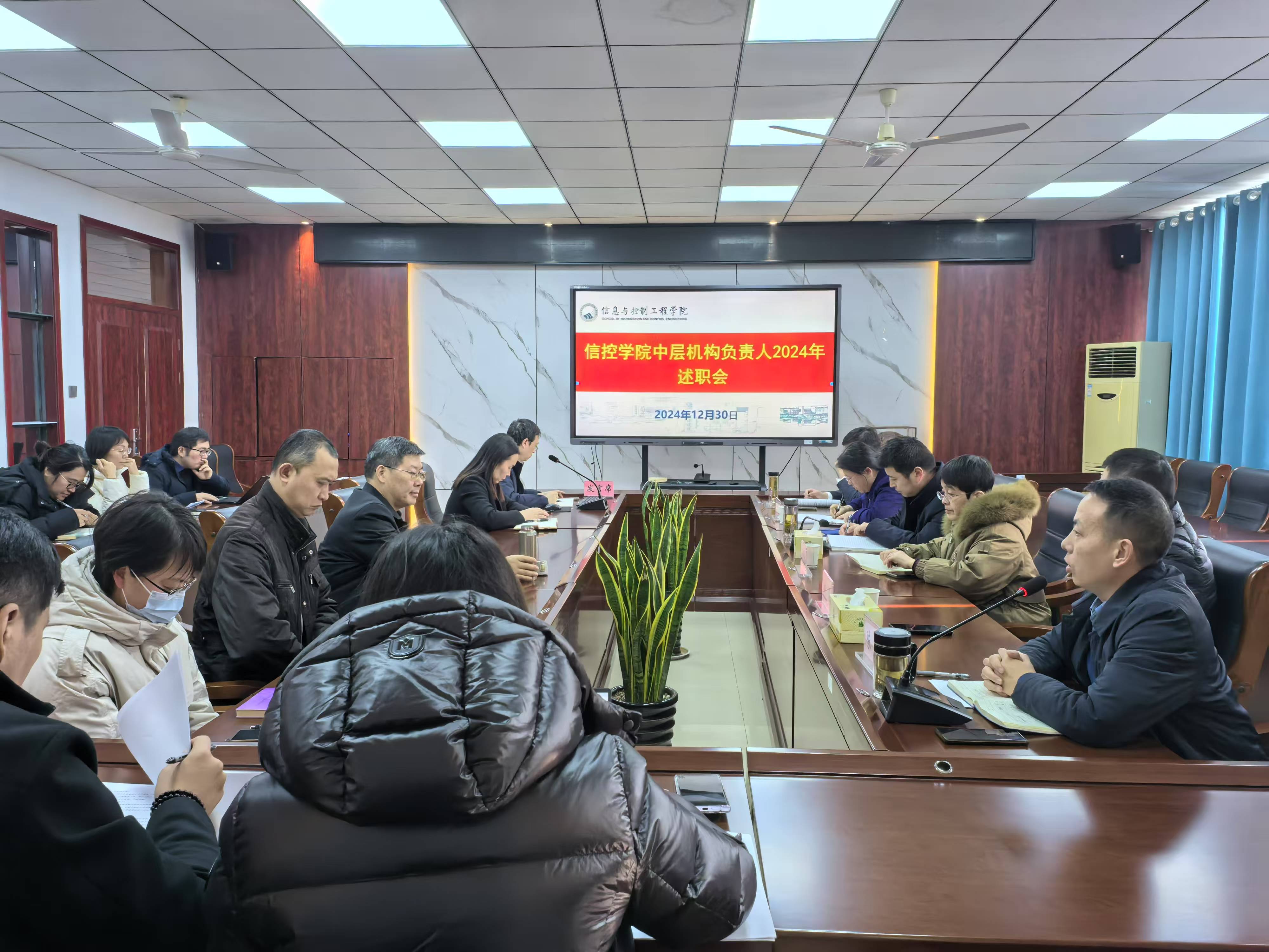 在A311会议室召开2024年度中层机构负责人述职会议。院党委书记程德强、院长王雪松、党委副书记翟文艳,副院长刘海、陈平、代伟,学院各系(学科、中心)、机关科室、群团组织等15个内设中层机构负责人参加会议。会议由陈平主持。