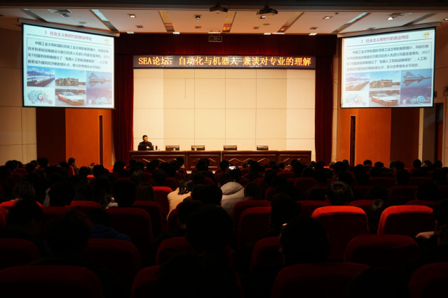 楼A101报告厅组织举办SEA论坛:新创办专业——自动化与机器人分析报告会暨专业分流的讲座。