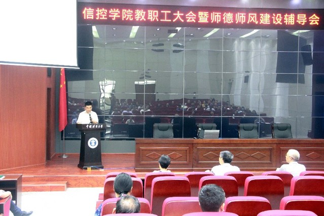 于信控楼A101报告厅召开全体教职工大会,全面总结2020年上半年学院各项工作,布置下半年重点工作,学院党政领导班子以及全体教职工出席大会,大会由院党委书记张磊主持。