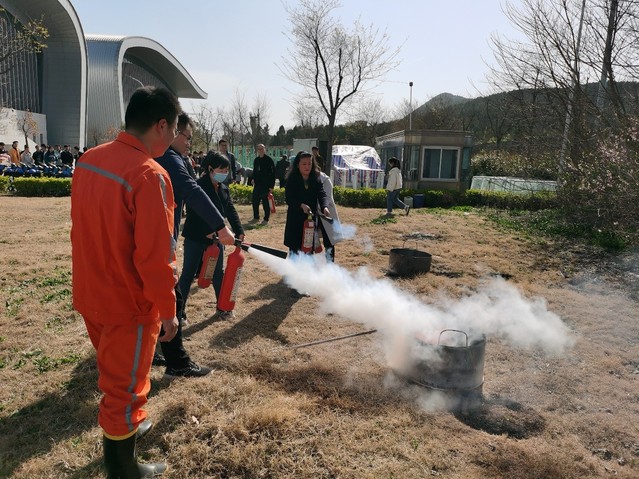 活动开始前,学院葛如峰副院长阐述了对本次演习的重要性和必要性,校保卫处老师首先向参加活动的师生强调安全意识、忧患意识,如何增强防灾自救能力、应急避险能力,介绍了发生火灾后的逃生技巧以及正确使用灭火器的方法。紧接着在保卫处老师的指导下进行实地灭火演习。参加演习的人员用二氧化碳灭火器和干粉灭火器对点燃的火堆和油箱进行灭火,整个演练过程有条不紊,、严谨有序、服从指挥、操作正确、配合默契,达到要求的消防效果,活动圆满成功。