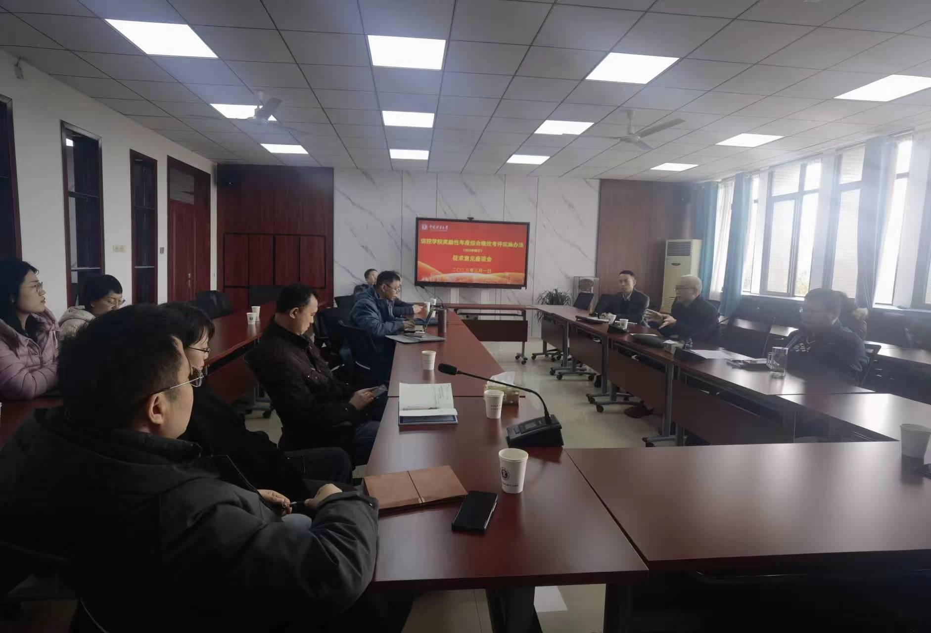 奖励性年度综合绩效考评实施办法》(以下简称绩效考评办法)的修订工作。3月1日上午,学院在A311会议室召开绩效考评办法征求意见座谈会。副院长李世银、刘海、陈平,学院教授委员会及各中层机构负责人,各职称教师代表30余人参加会议。会议由副院长陈平主持。
