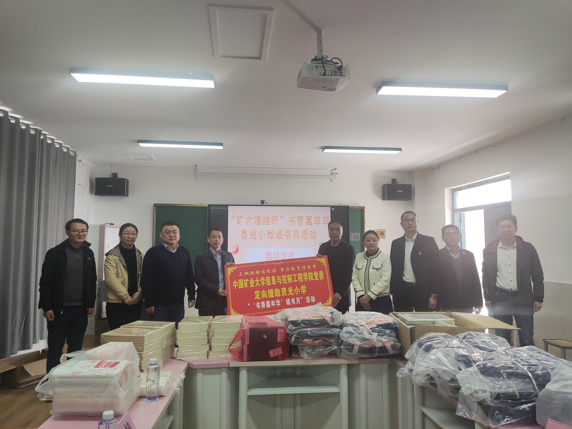 副院长陈平,电子信息党支部书记郭星歌、副书记陈世海,自动化系党支部副书记王国庆,2022级本科生辅导员谢龙龙以及学院锋行青年志愿者一行7人,一同前往灵光小学参加“书香嘉年华”读书月启动仪式及相关活动。虞姬镇人大专职副主席王绘、新浪扬帆公益基金江苏站站长王艳、虞姬镇中心校校长张永、灵光小学校长付振雪以及灵光小学各年级优秀学生代表及其家长参加本次活动。启动仪式由我校驻灵光村帮扶干部、村第一书记杨爱东主持。