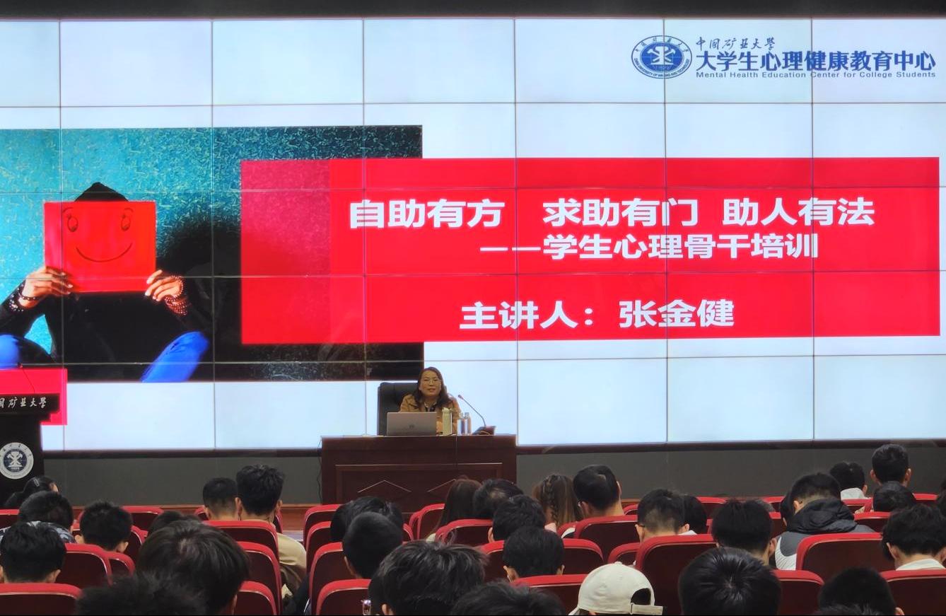 张金健老师作题为“自助有方、求助有门、助人有法”的讲座。她从何为异常心理、心理障碍的工作诊断与自我评估引入,讲述了集教育教学、实践活动、咨询服务、预防干预四位一体的心理自助渠道,以及制定一个目标、养成一个习惯、发展一个爱好、形成一种思维、寻求一种支持“五个一”的心理健康维护方法,并提供了省心理健康热线、苏心APP、辅导员老师、校心理健康中心等多种寻求帮助的途径。她从自尊的能力维度和关系维度出发,提醒心理委员和宿舍长等学生骨干,关心关爱身边同学,建立良好的人际关系,关注容易发生心理危机的时段,为同学们提供支持和陪伴,必要时提供就医和求助的建议等,引导学生骨干进一步增进对同学的理解,提高发现问题、反馈问题的能力。