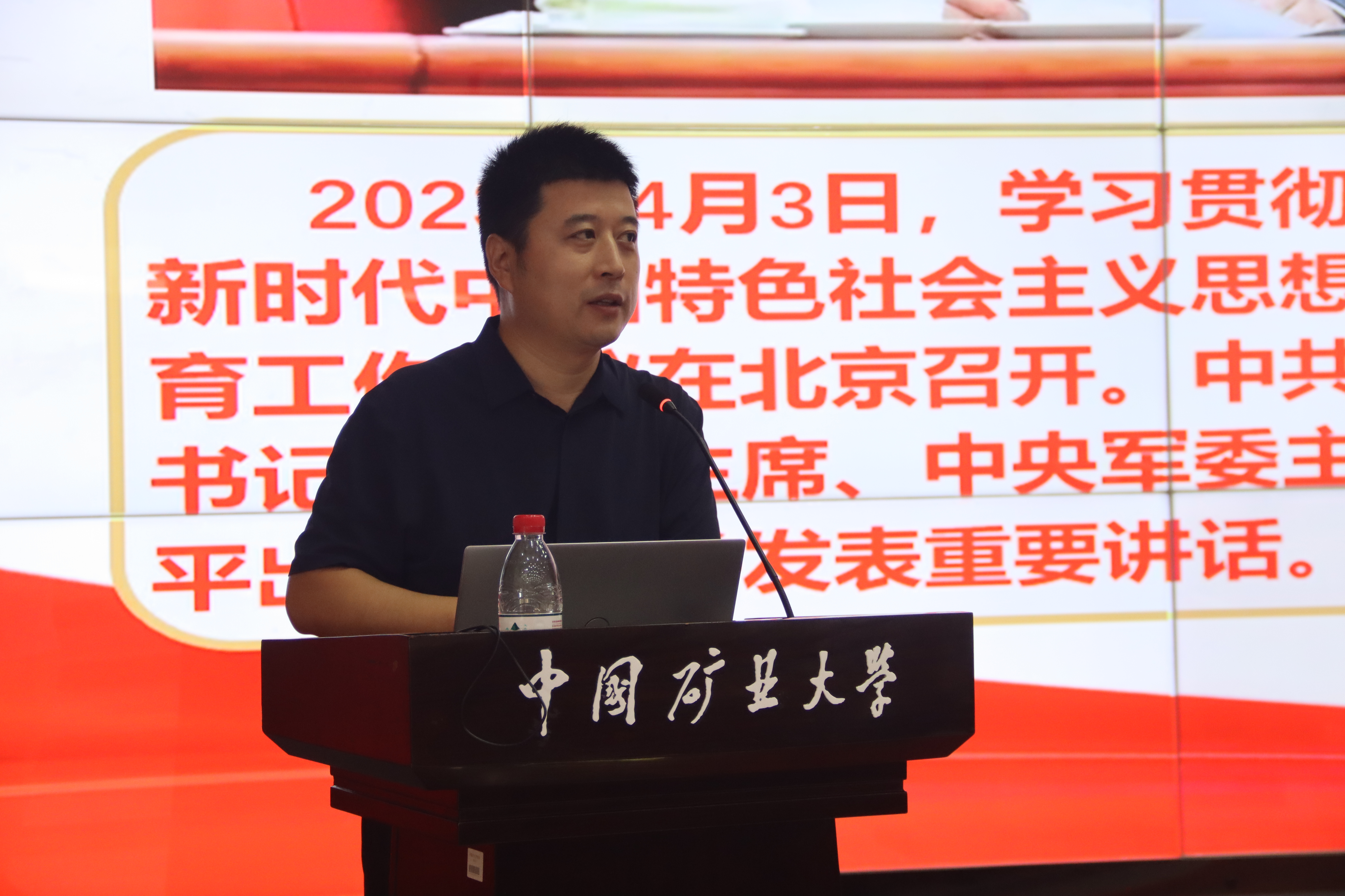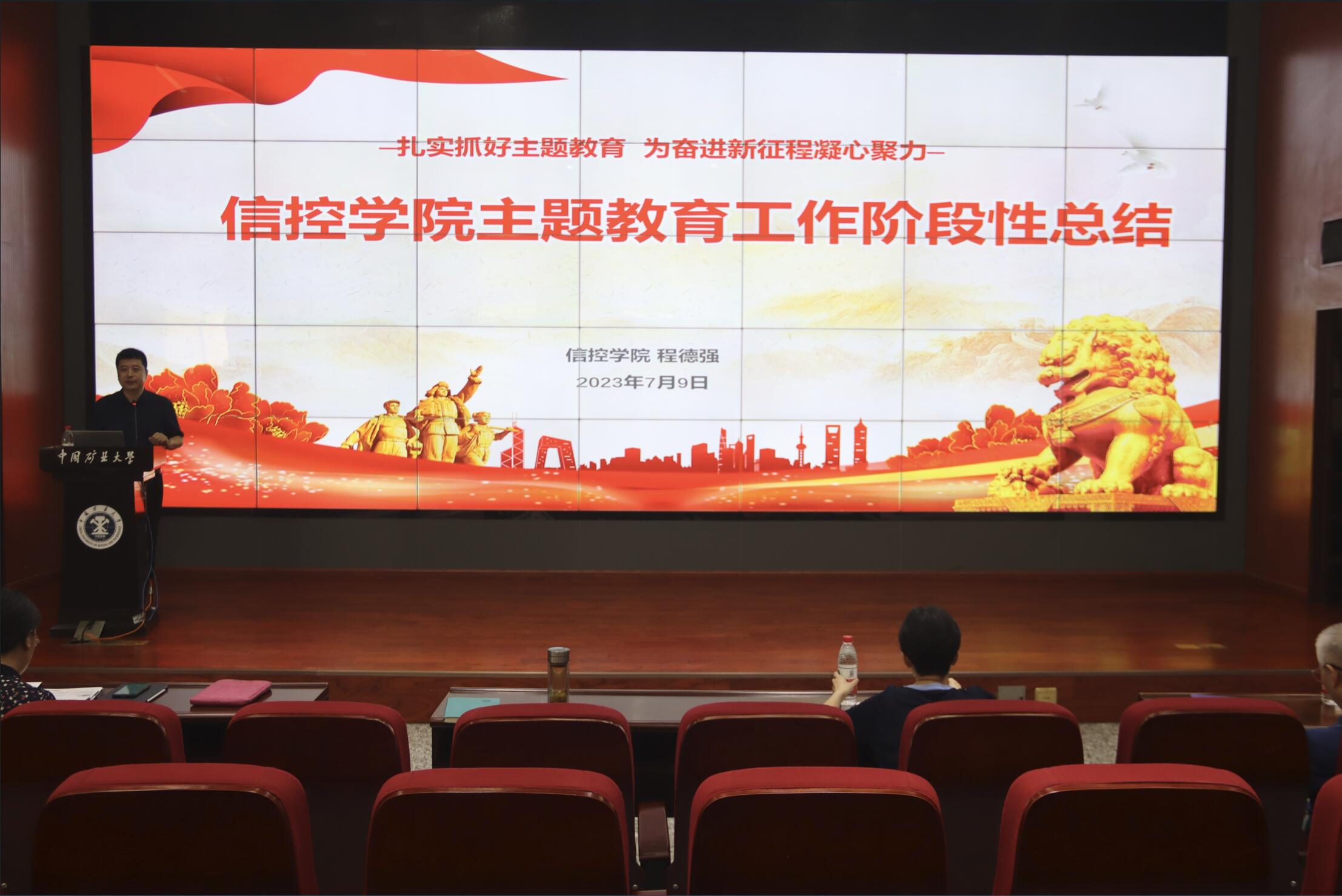 程德强作主题教育工作阶段总结,他结合学院主题教育工作方案,通报了学院各党支部理论学习、学院党委专题工作调研和读书班开展、领导干部及党支部书记讲授专题党课等情况,总结了开展调查研究以及检视整改工作取得的成效,明确了下一阶段持续推进主题教育的相关要求。他指出,上半年在全院教职工的共同努力下,学院在制度建设与内部治理、审核评估迎评促建与国家一流课程建设、学科建设与科研研究生管理、安全与实验室建设、学生工作以及环境文化建设等方面取得了良好成绩,下半年要围绕“十四五”规划中期评估、学院年度工作要点、党建业务一体化融合等推进学院高质量发展各项工作,不断提升师生员工获得感幸福感。