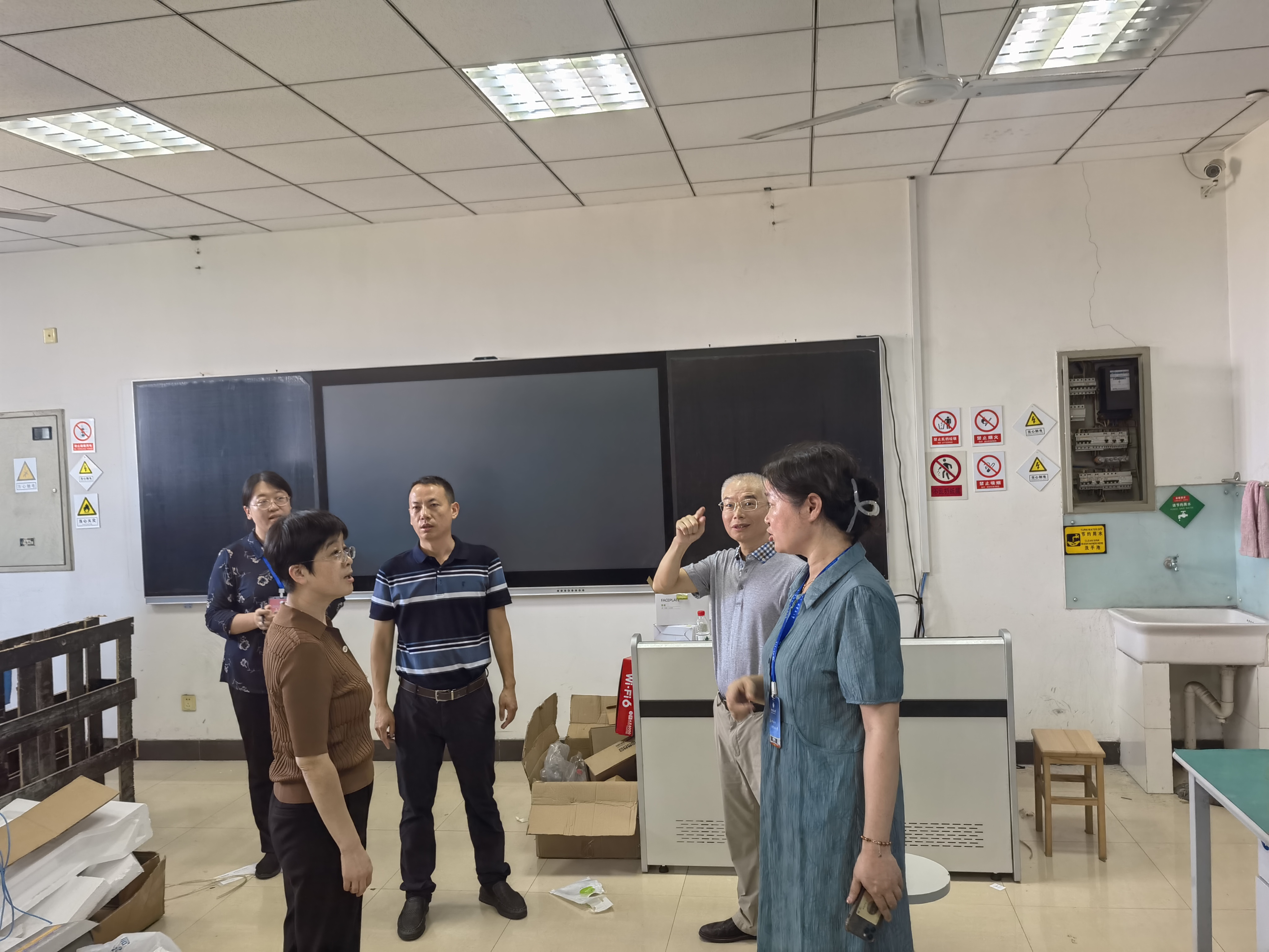 开展新学期开学准备暨楼宇文化建设、安全工作检查。院长王雪松、副书记翟文艳、副院长李世银、副院长陈平,院党政办、实验中心相关负责同志参加了活动。