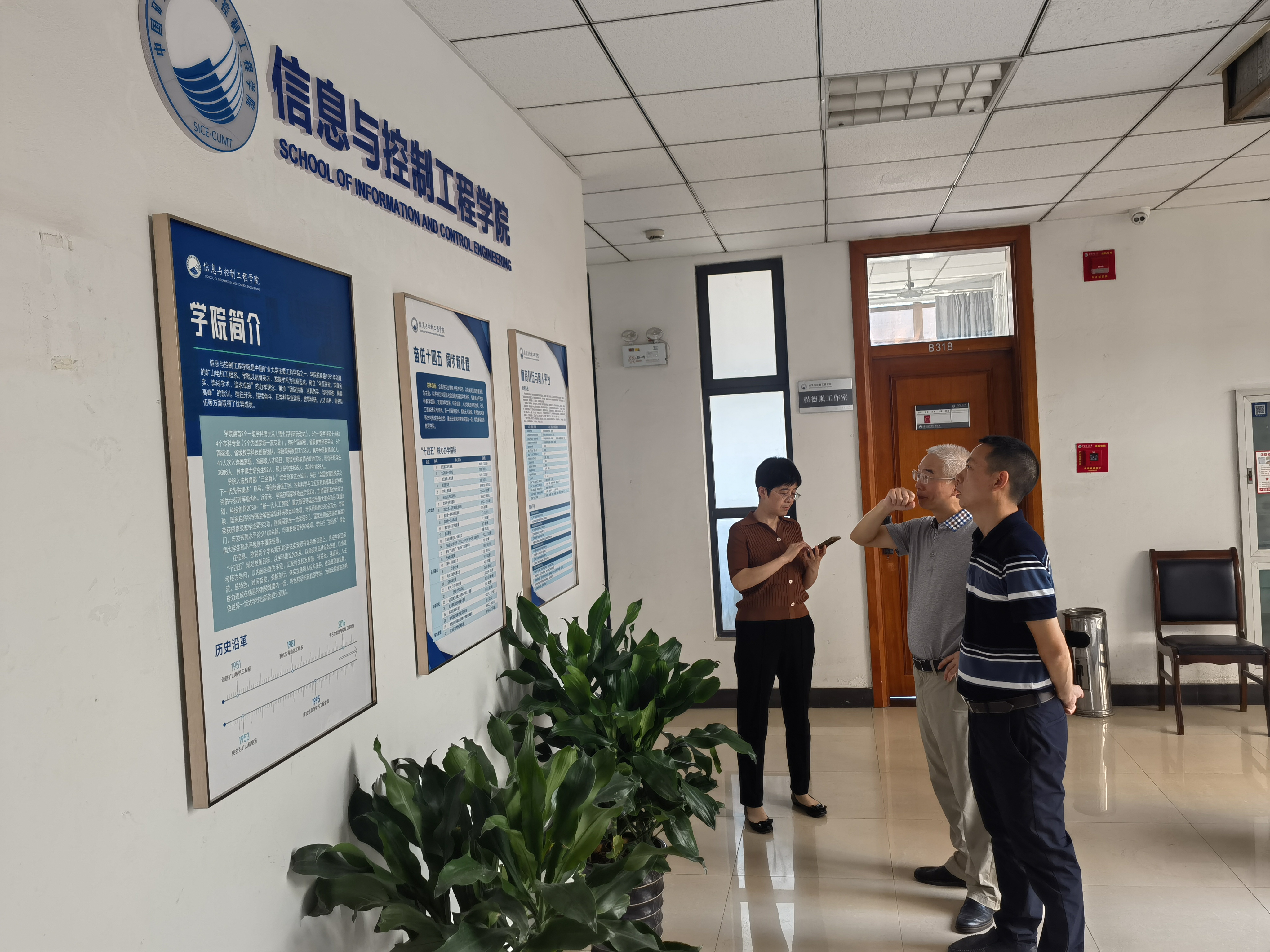 王雪松院长一行检查了电路实验室、云桌面实验室等实验室暑期设备更新改造、安全巡查及实验准备情况,参观了电工电子国家级示范中心文化墙建设;走访了工会活动室、辅导员办公室、科研研究生办公室、教学办公室,询问了新学期开学相关工作的准备情况;检查了学院办公区文化建设情况,对持续打造具有学科专业特色的学院楼宇文化建设提出了意见和建议。