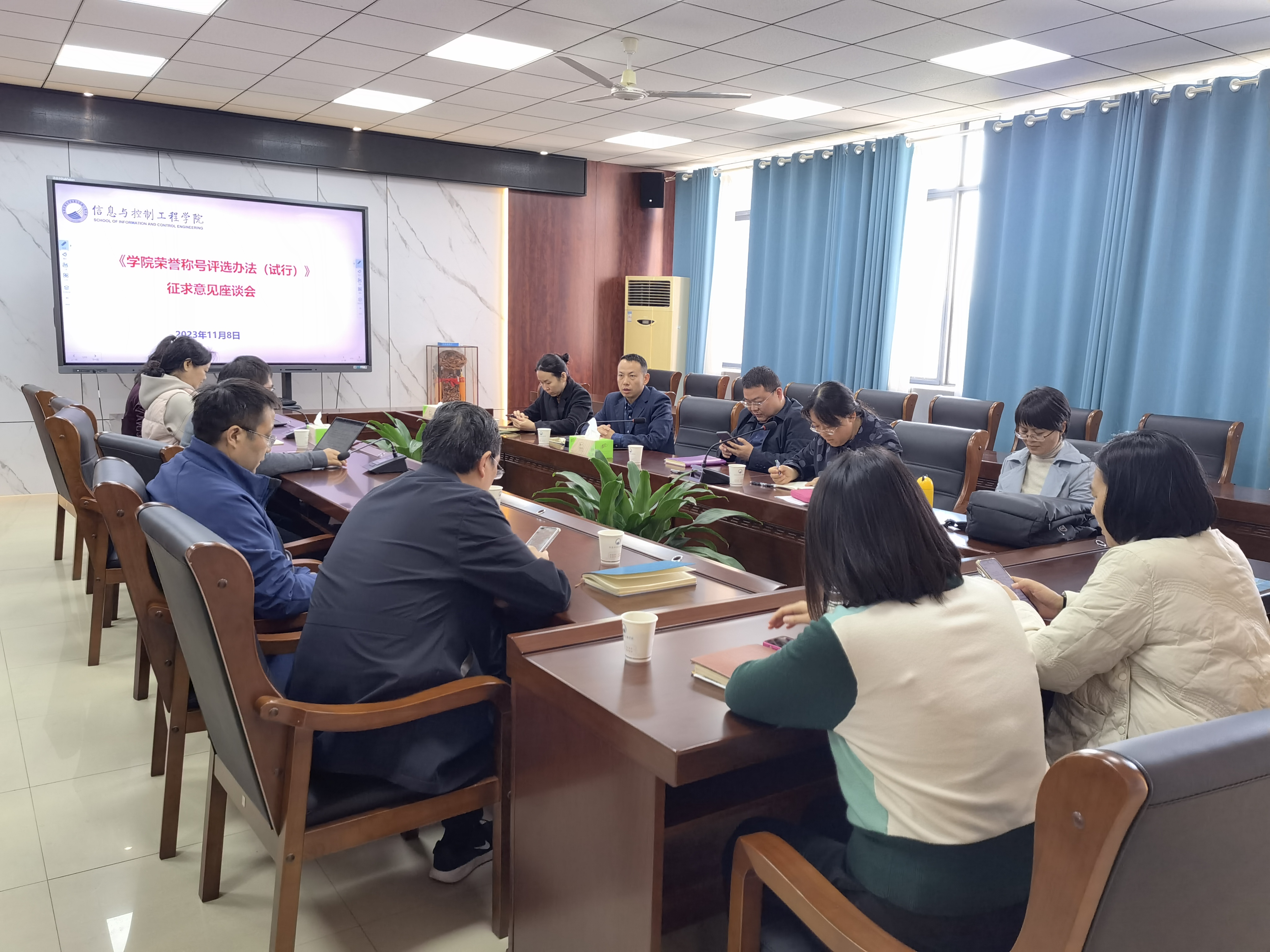 在A311会议室召开学院荣誉称号评选办法征求意见座谈会。院党委副书记翟文艳,副院长刘海、陈平,学院内设中层机构负责人参加会议。会议由陈平主持。