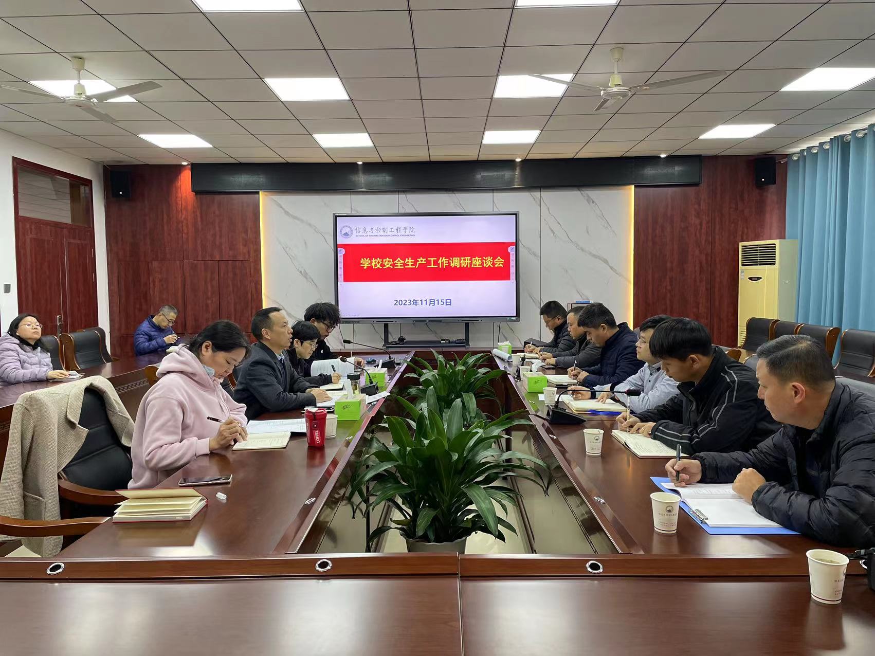 王垚磊介绍了调研目的及学校安全工作考核相关工作。陈平从领导重视与责任网格、制度建设与奖惩措施、风险研判与应急处置、教育培训与经费保障、安全检查与隐患整改闭环管理等方面汇报了学院安全生产工作情况。王雪松介绍了学院坚持统筹发展与安全,驰而不息加强安全工作的相关情况。