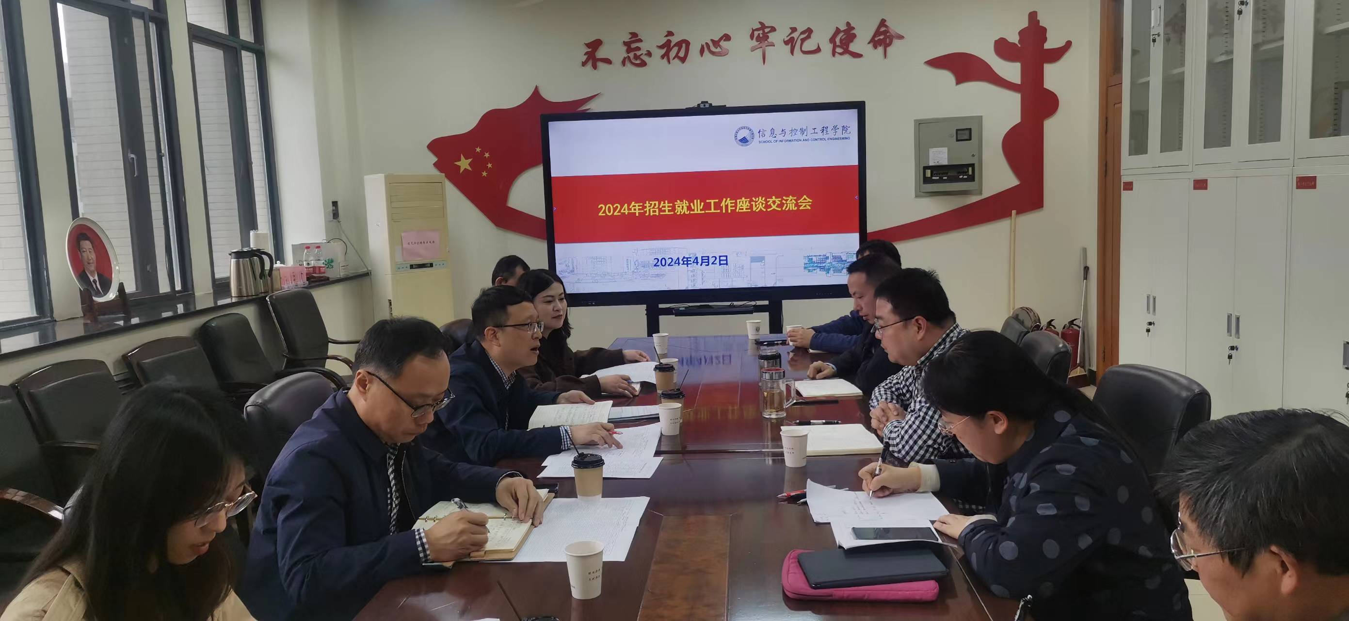 指导招生就业工作并开展主题调研交流,学院在信控楼B313会议室召开座谈讨论会,学院党委副书记翟文艳、副院长刘海、副院长陈平,相关专业负责人和教师代表参加座谈讨论会,会议由副院长刘海主持。