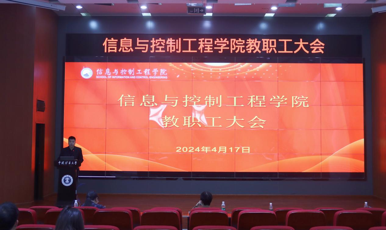 在报告厅召开全院教职工大会。会议由学院党委书记程德强主持。
