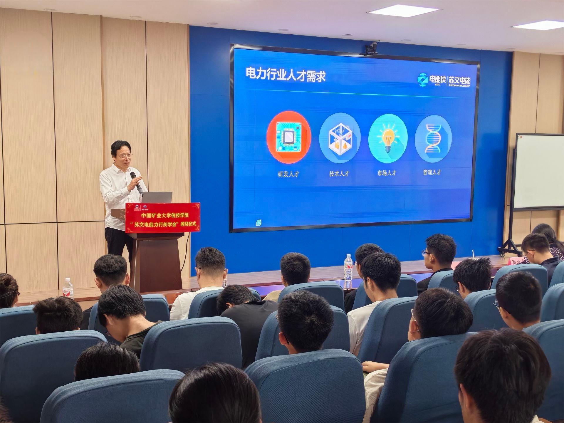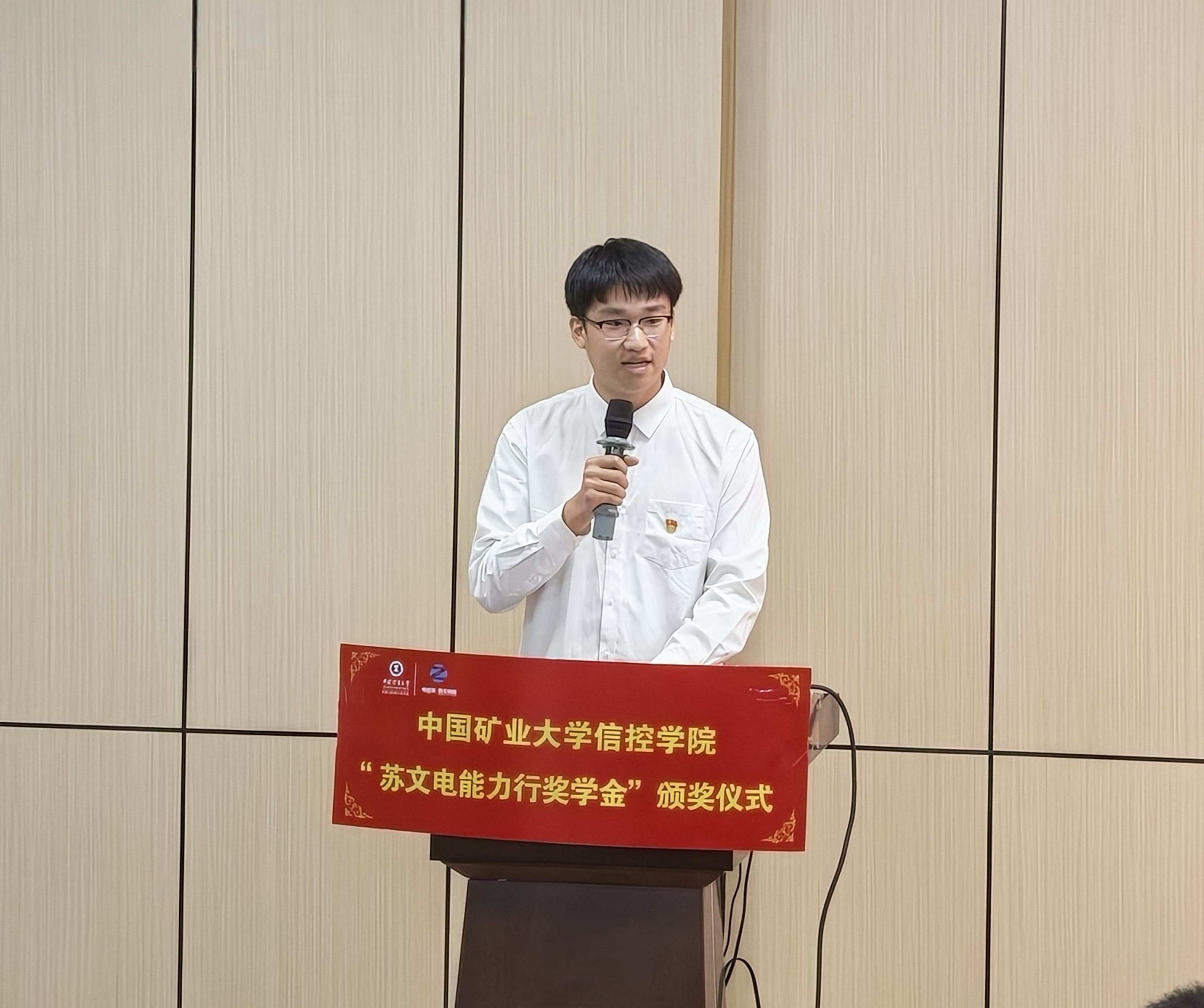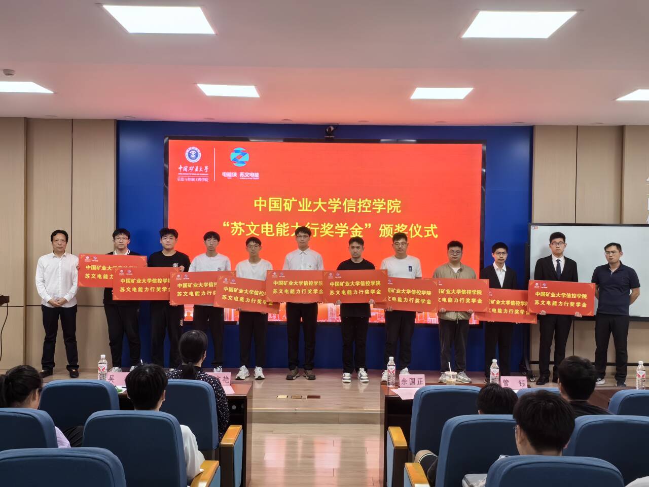 发展的苏文电能科技股份有限公司表示感谢,向获得“苏文电能力行奖学金”的同学们表示祝贺,希望大家积极弘扬和传承矿大精神,德智体美劳全面发展,努力成为具有家国情怀、国际视野,富有创新精神、实践能力,能够引领科技创新、行业发展、社会进步的栋梁之才。