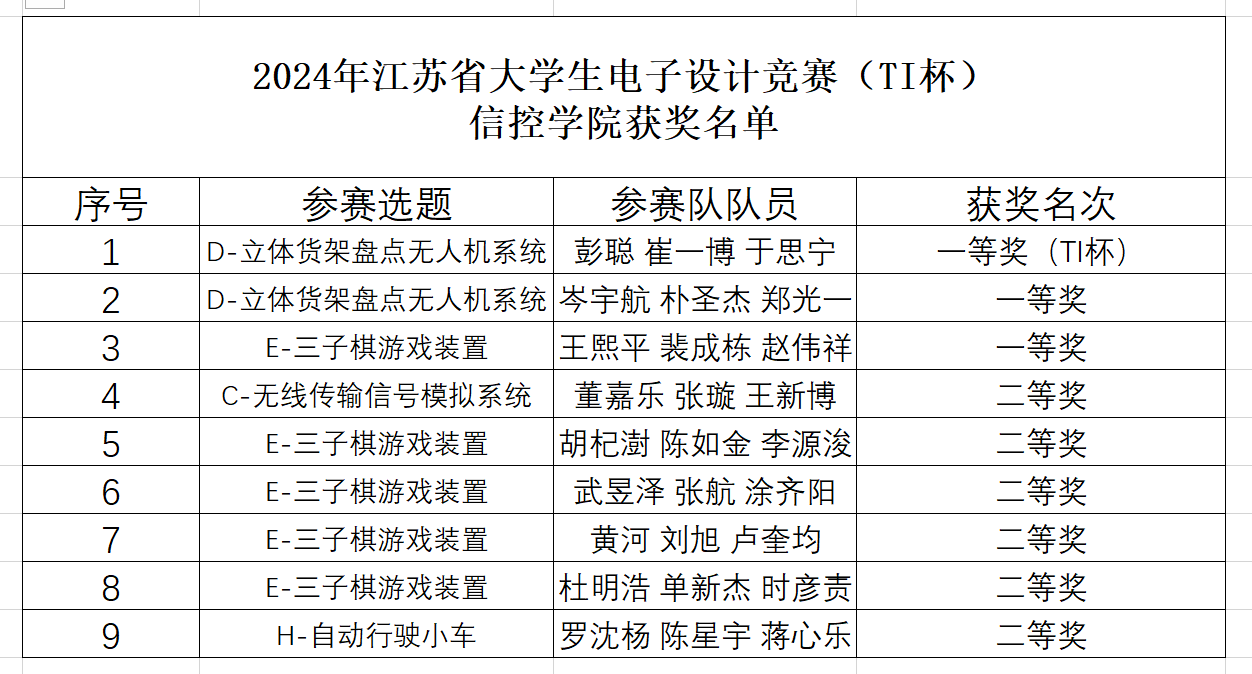 3支队伍获江苏省一等奖、6支队伍获江苏省二等奖,同时矿大首次获得江苏省大学生电子设计竞赛最高奖TI杯(本科组)。