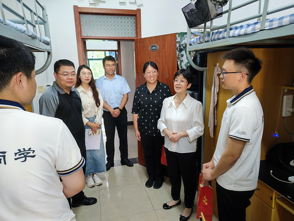 9月14日上午,学院院长王雪松、学院党委副书记翟文艳、副院长刘海以及2024级辅导员老师来到2024级学生宿舍走访慰问新生,送上节日的问候和祝福。