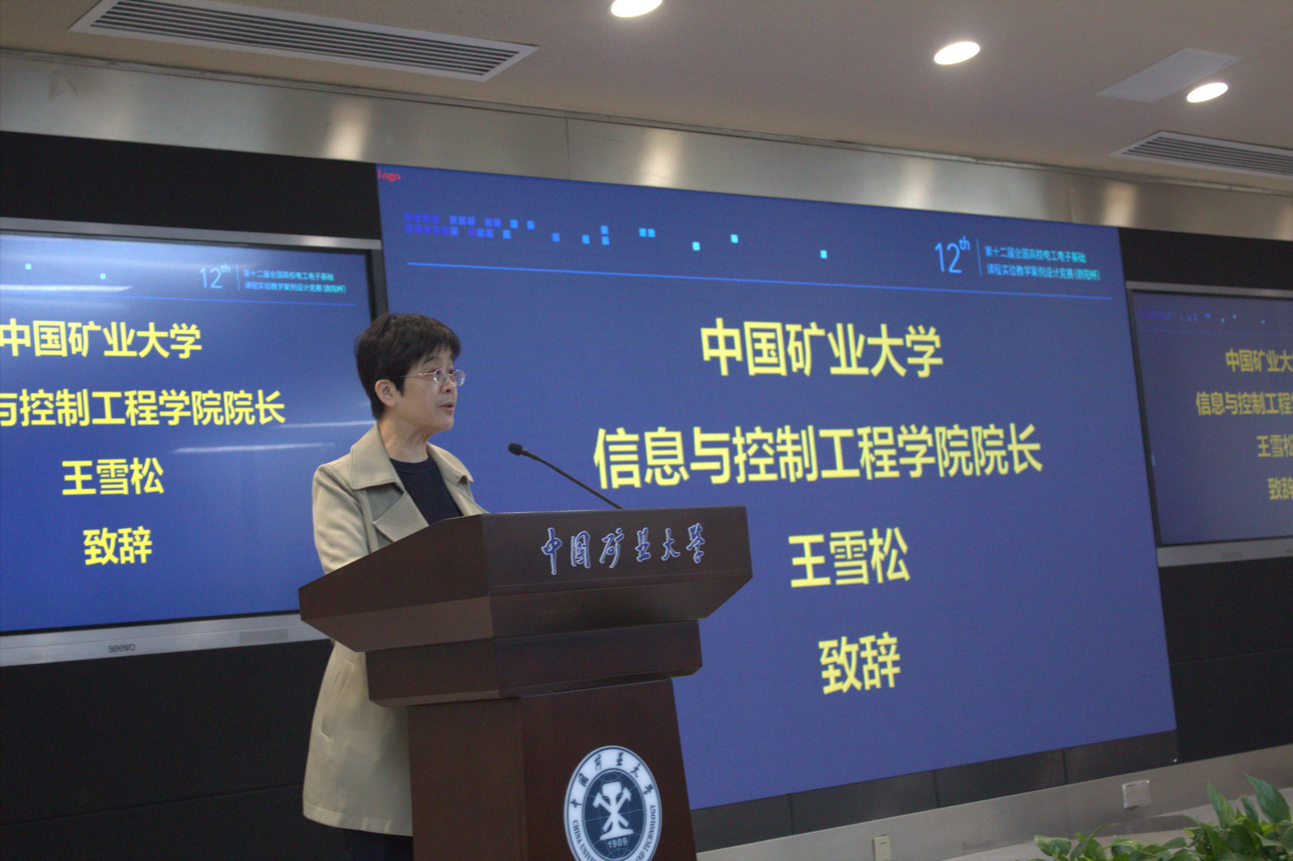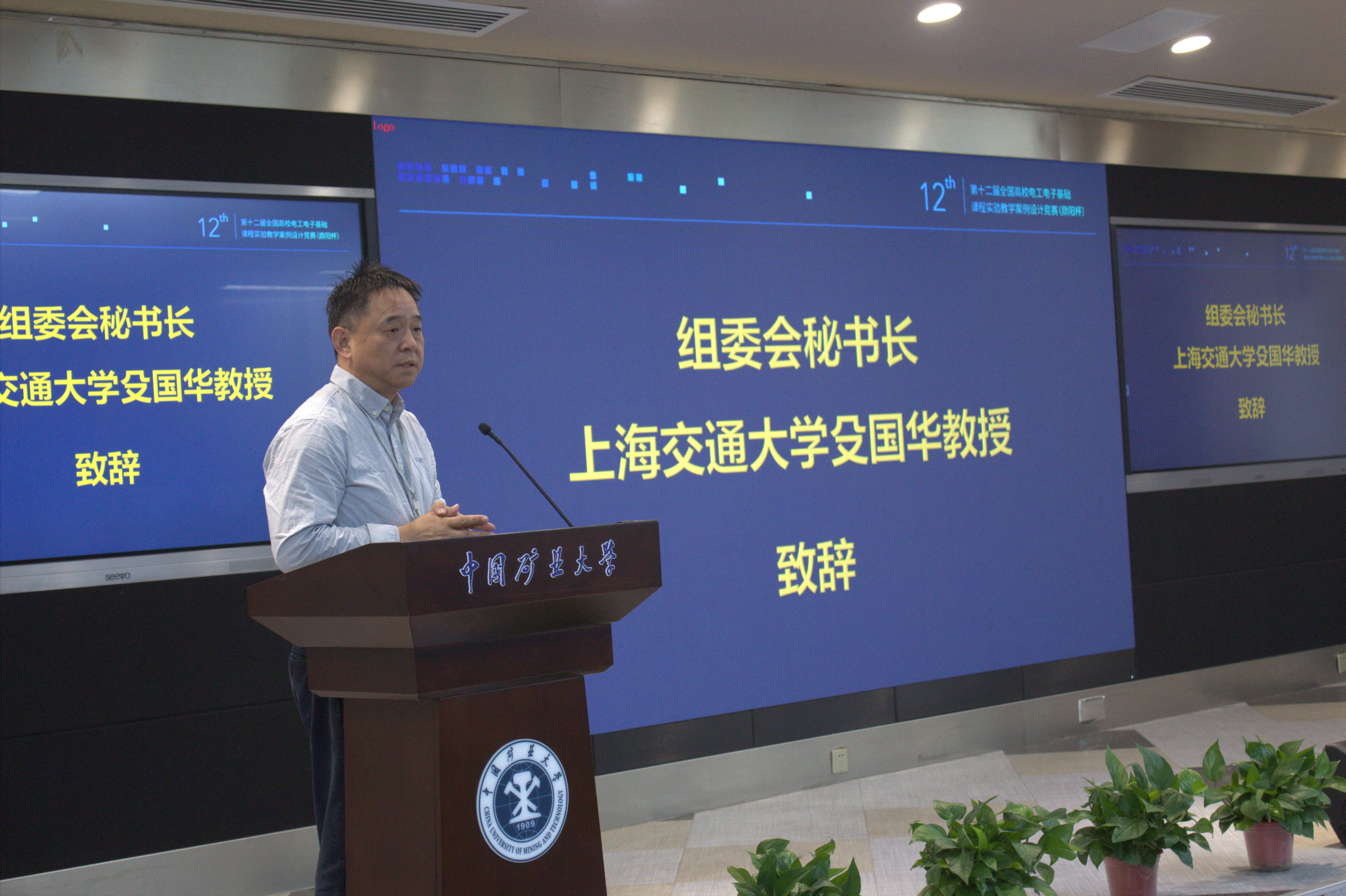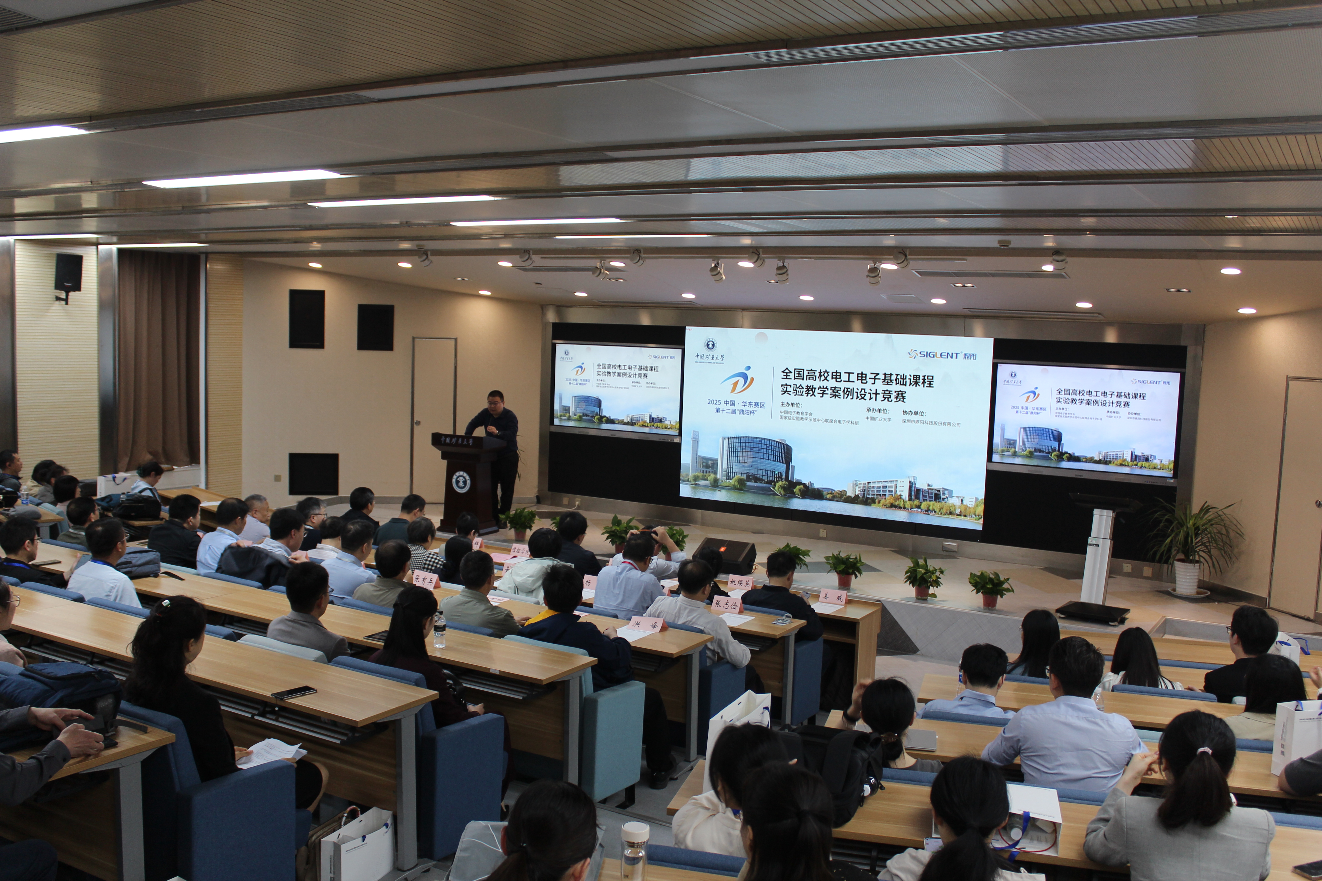 石礼伟教授和王雪松教授在开幕式上为第十二届全国高校电工电子基础课程实验教学案例设计竞赛(鼎阳杯)华东赛区竞赛致欢迎词。
