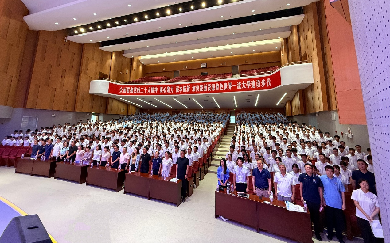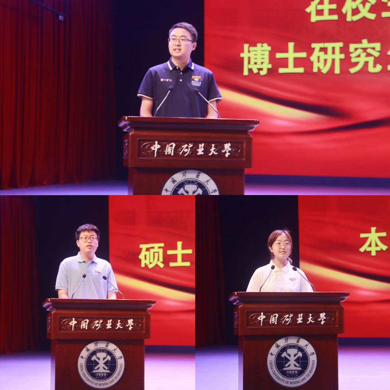 本硕博本土培养的教师,他结合自己的学习工作经历,分别勉励本科新生和研究生新生:在“探索”中扎根,从多元体验中明确方向,让青春绽放无限可能;在“深耕”中突破,以创新精神勇攀科研高峰。2022级博士研究生韩成功作为在校生代表发言,他向新生分享了学术探索心得与成长感悟,鼓励大家珍惜大学时光,传承矿大精神,勇担时代使命。2025级硕士研究生张雨涛、本科生赵文菲作为新生代表发言,他们号召新同学积极投身专业学习,努力成长为堪当民族复兴大任的时代新人。