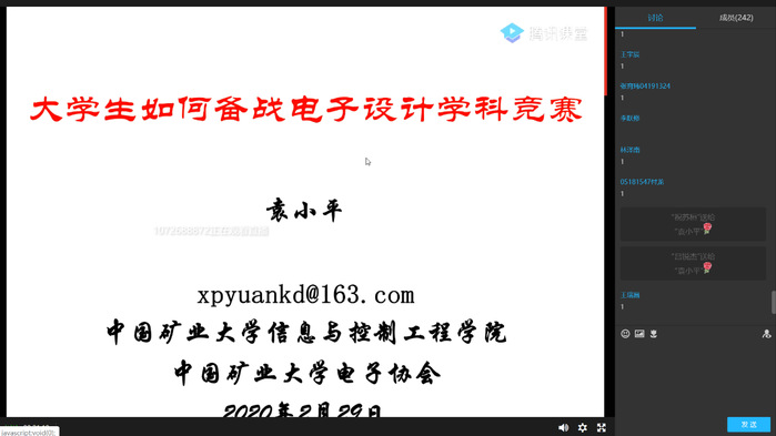团委科创中心邀请袁小平教授在腾讯课堂直播平台面向全校同学举办了线上“院长杯”SEA论坛—电子设计学科竞赛讲座。讲座共吸引了来自各个学院的240余名同学聆听。