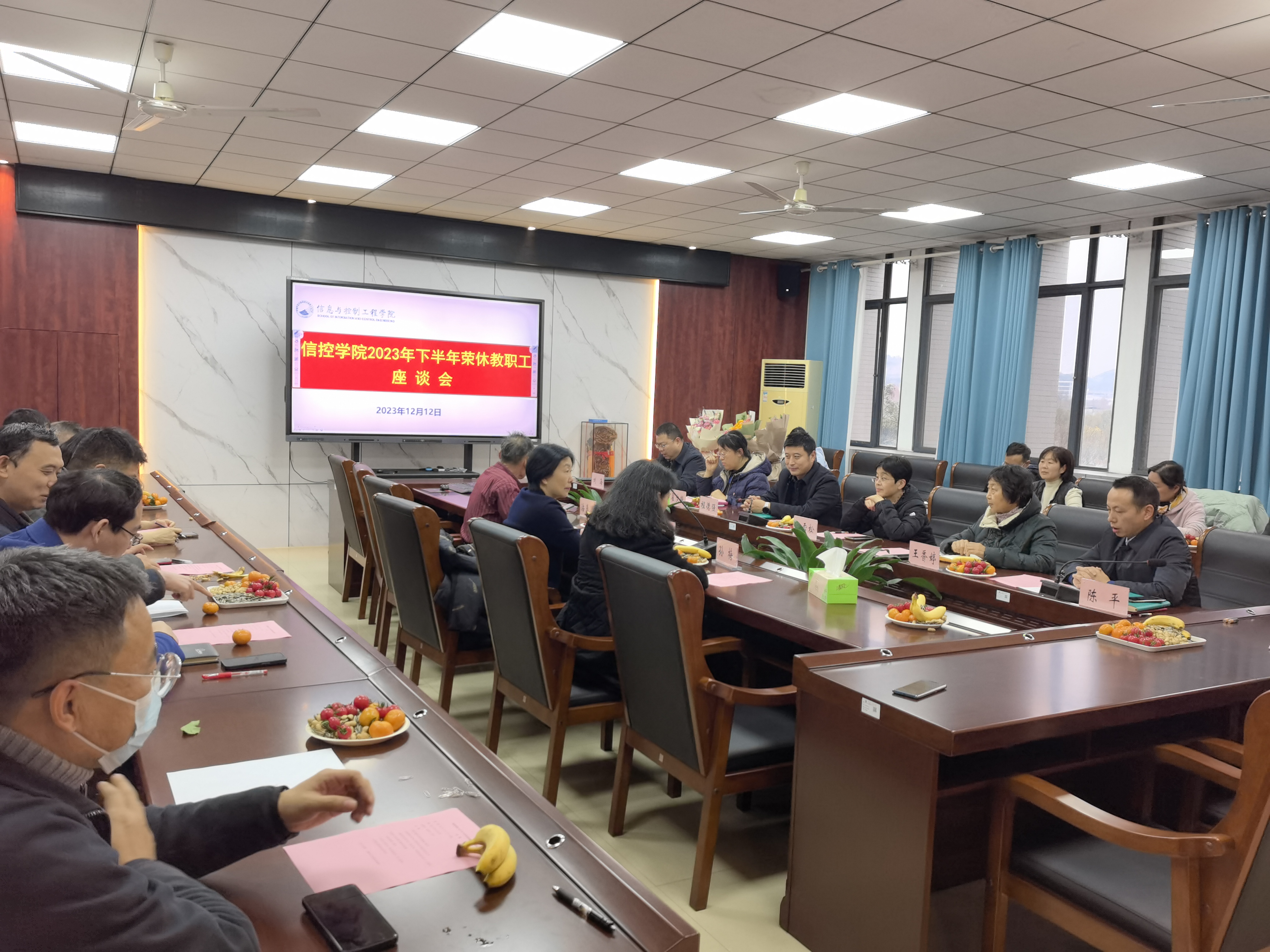 在A311会议室召开2023年下半年荣休教职工座谈会。张剑英、潘春德、孙梅等三位荣休教师(马勇、孙伟等两位荣休老师因事未能到会),院领导程德强、王雪松、翟文艳、刘海、陈平,院关工委常务副主任王香婷,各系(中心)党支部书记、主任,学院机关相关科室负责人,院工会等群团组织负责人,以及青年教师代表等参加了会议。会议由副院长陈平主持。