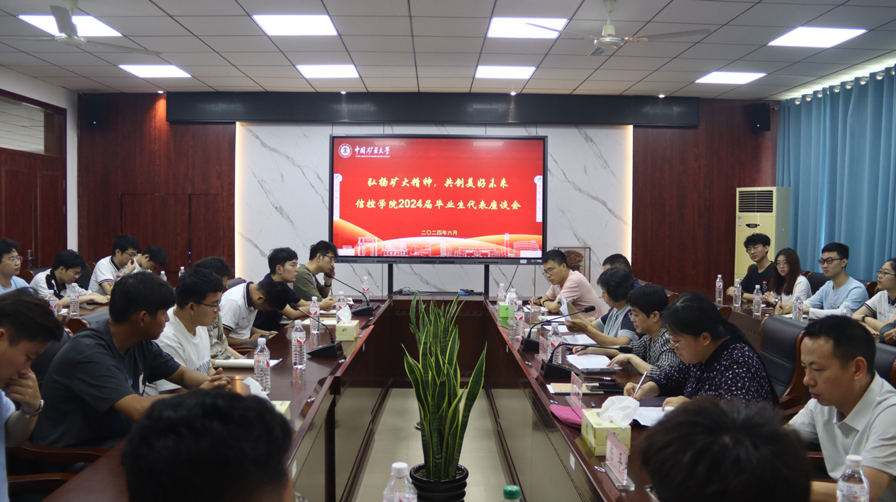 在学院楼A311举行2024届毕业生代表座谈会。学院院长王雪松,江苏省教学名师、学院关工委常务副主任王香婷,党委副书记翟文艳,副院长刘海、陈平,毕业班辅导员焦敬超出席会议,学院29名本科生、研究生毕业生代表参加座谈会,座谈会由翟文艳主持。