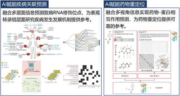 基于单视角子空间学习理论提出 RMDisAI、BRPCA 和 SpBLRSR 算法和基于多视角的 LRTCLS 算法,预测致病 RNA 甲基化诱导的转录后调控通路,提高研究效率并降低实验成本。针对药物重定位的应用背景,提出基于多视角自编码器的药物-蛋白关联预测算法 MULGA,为药物重定位研究提供了有力工具,推动精准医学与新药研发的发展。